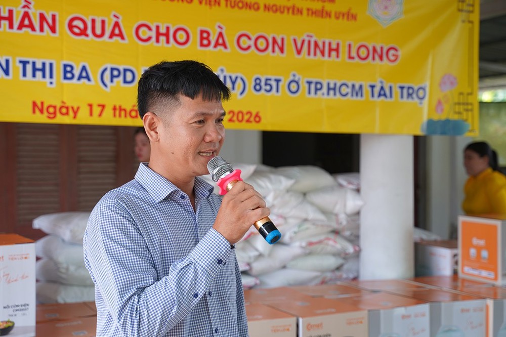 Phát biểu tại buổi lễ, thay mặt Thượng tọa Thích Minh Phú, Phật tử Thiện Quang đã bày tỏ niềm hoan hỷ trước sự hiện diện của quý lãnh đạo chính quyền địa phương cùng đông đảo bà con nhân dân đến tham dự. Đồng thời cho biết, việc xây dựng các công trình cầu giao thông nông thôn và nhà tình thương không chỉ mang ý nghĩa hỗ trợ thiết thực về đời sống cho người dân, mà còn thể hiện tinh thần sẻ chia, phụng sự cộng đồng của Phật giáo, góp phần chung tay cùng xã hội chăm lo cho những hoàn cảnh còn nhiều khó khăn.