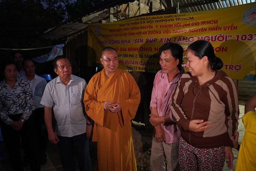 Với tâm nguyện sẻ chia và tinh thần từ bi của đạo Phật, đoàn đã vượt đường xa đến địa phương để trang nghiêm cử hành lễ khánh thành cầu số 574, đồng thời khởi công xây dựng 7 căn nhà tình thương thuộc chương trình “Sen Búp Xin Tặng Người”. Những công trình ý nghĩa này được trao tặng như món quà nhân ái dành cho các hộ gia đình còn nhiều khó khăn, góp phần giúp bà con có nơi an cư ổn định cuộc sống, vươn lên trong đời sống.