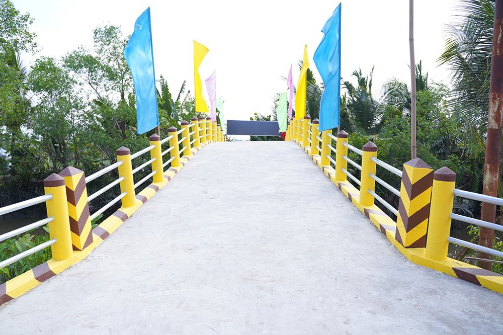 Công trình cầu giao thông nông thôn được xây dựng với chiều ngang 3,3m, chiều dài 28m, bảo đảm cho các phương tiện có tải trọng khoảng 8 tấn lưu thông thuận lợi, với tổng kinh phí thực hiện 600 triệu đồng.