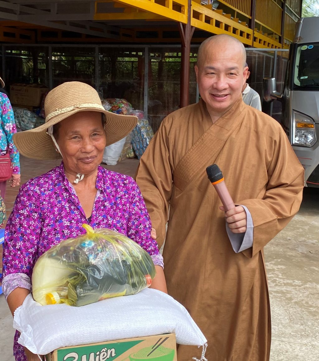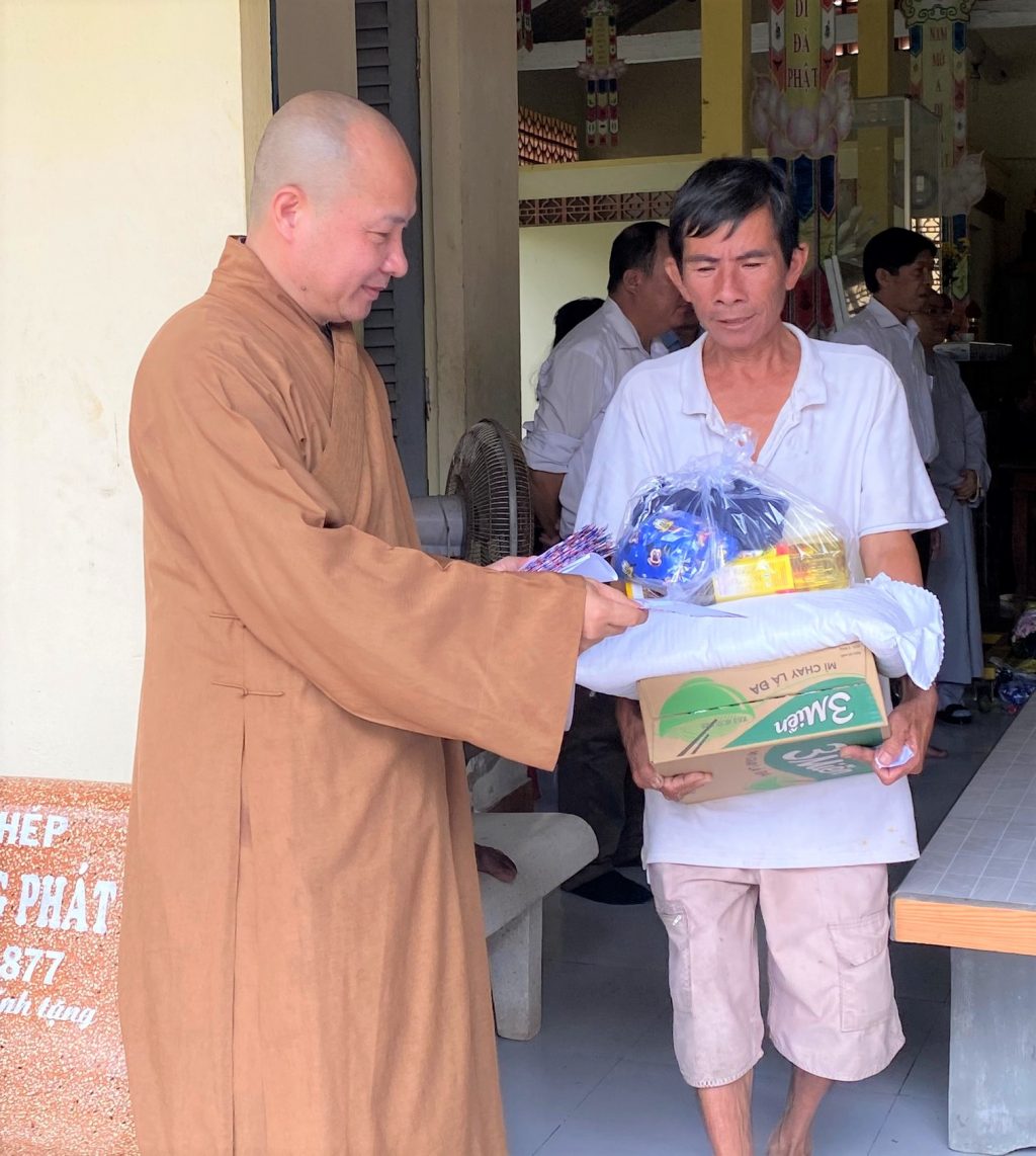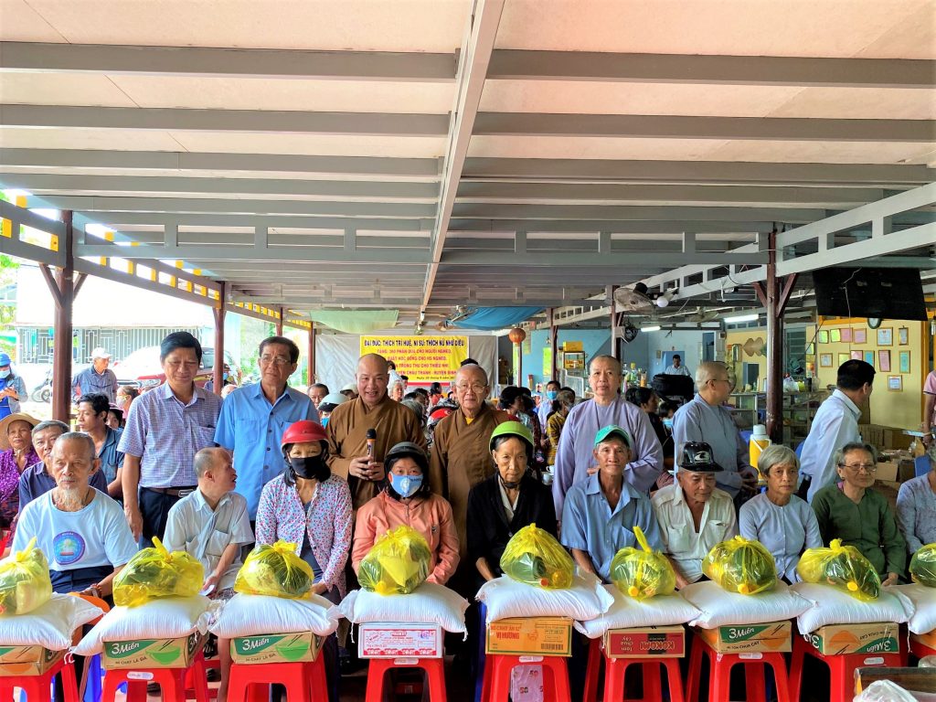 Dưới sự chứng minh của Hòa thượng Thích Tư Ân – Trụ trì Chùa Đức Thắng, đoàn đã trao 110 suất quà yêu thương đến bà con có hoàn cảnh khó khăn.