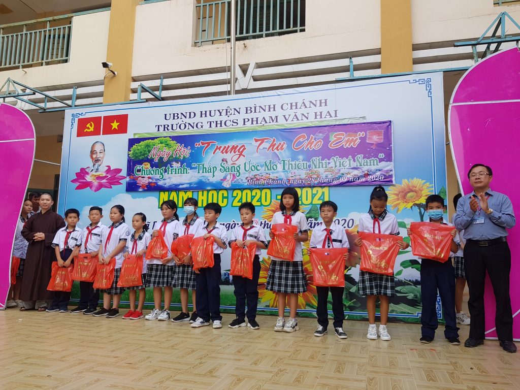 Cùng ngày, thừa ủy nhiệm của Đại đức Thích Trí Huệ, tại Trường Trung học Cơ sở Phạm Văn Hai (huyện Bình Chánh, thành phố Hồ Chí Minh), ĐĐ. Thích Trí Thiện và ĐĐ. Thích Minh Kiên - Ủy viên Phân ban đã đến chung vui cùng các em học sinh trong chương trình “Ngày hội Trung Thu Cho Em”.