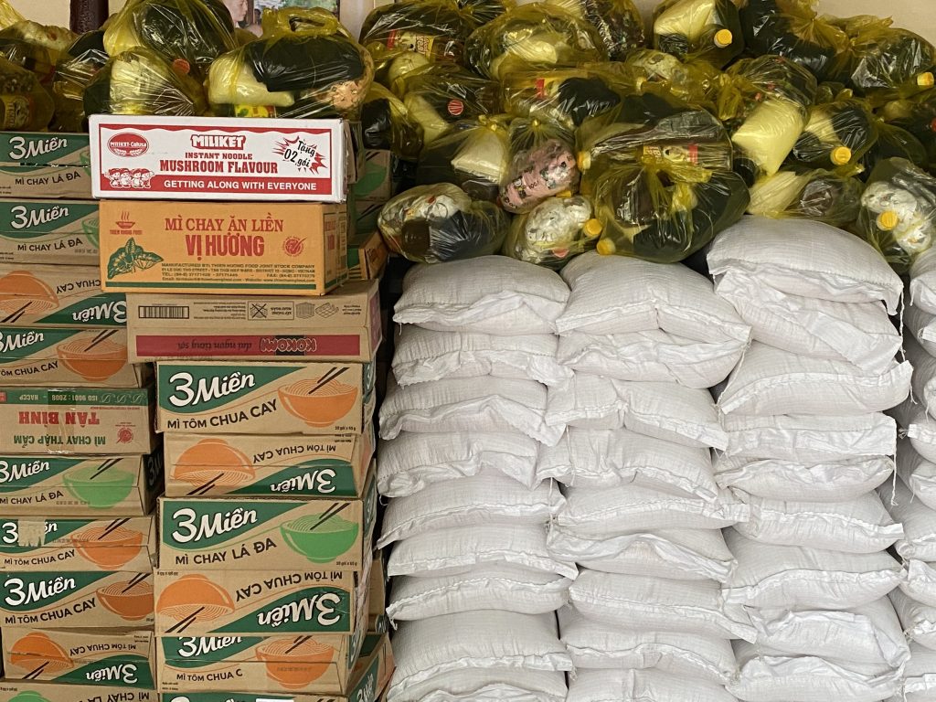 Mỗi suất quà trị giá là 400.000 đồng, bao gồm: gạo, thùng mỳ, nước tương, dầu ăn, đường, quần áo,.. và tịnh tài.