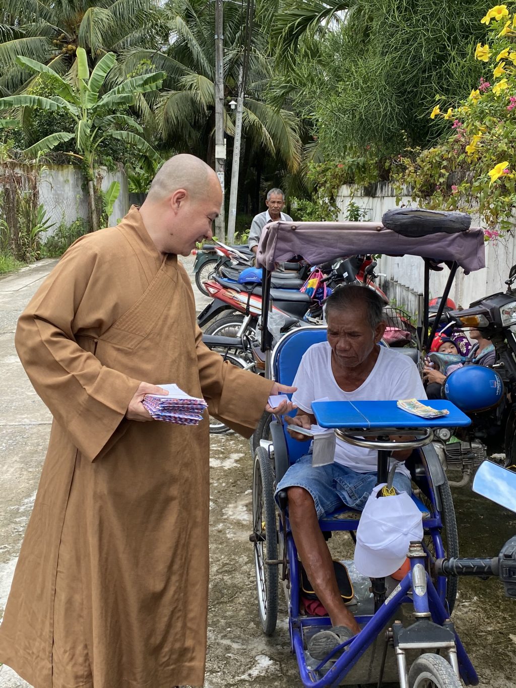 Được sự chỉ đạo và hướng dẫn của Đại đức Thích Trí Huệ -Trưởng Phân ban Từ thiện ĐN&QH Quốc tế TƯ GHPGVN, Trưởng Phân ban TTNPT TP.HCM phái đoàn đã đến địa điểm phát quà thân quen của Phân ban tại Bếp ăn Nhân ái Phước Viên (Bến Tre).
