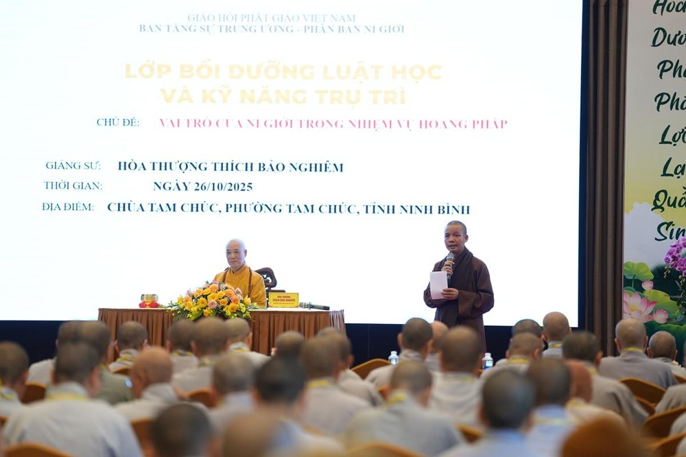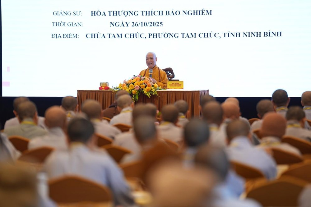 PSO - Nhận lời thỉnh mời của Ban tổ chức Lớp bồi dưỡng Luật học và Kỹ năng Trụ trì tại chùa Tam Chúc (tỉnh Ninh Bình), sáng ngày 26/10/2025, Hòa thượng Thích Bảo Nghiêm – Phó chủ tịch HĐTS, Trưởng Ban Hoằng pháp TW GHPGVN đã quang lâm và có bài thuyết giảng tới hơn 200 chư Ni các tỉnh thành phía Bắc về “Vai trò của Ni giới trong nhiệm vụ Hoằng pháp”.