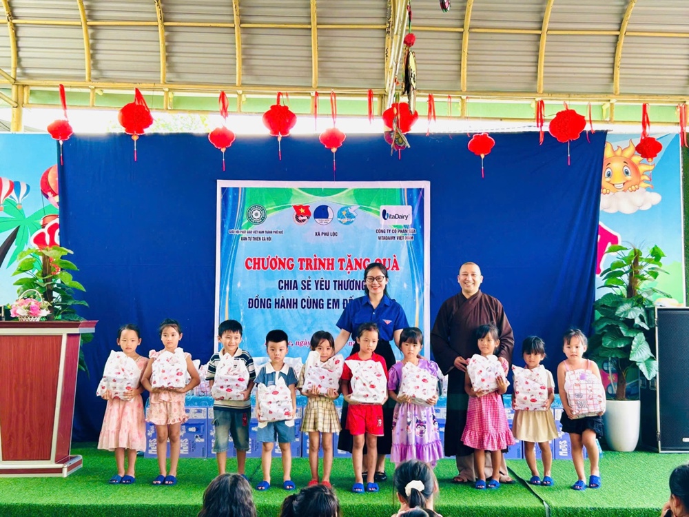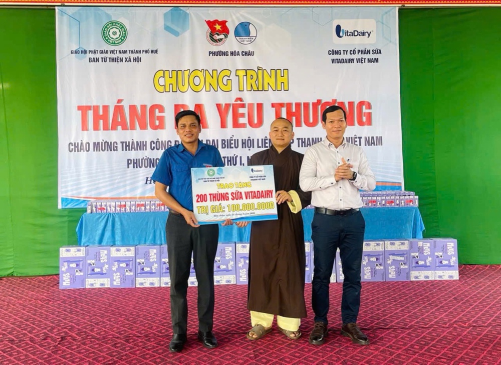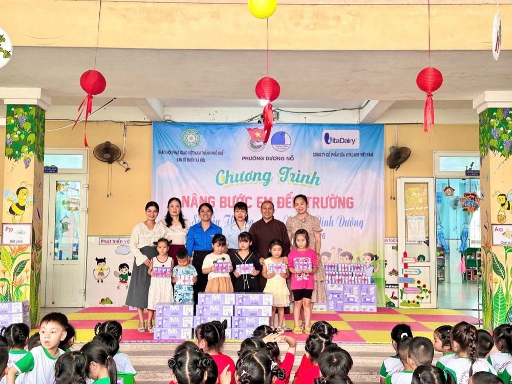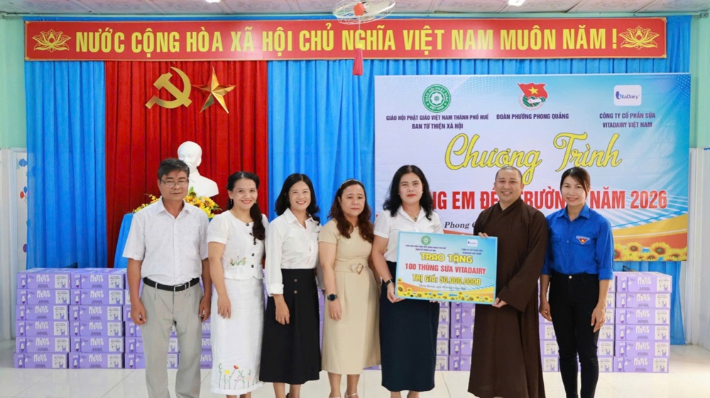 Ban Từ thiện Xã hội GHPGVN TP. Huế trân trọng tri ân Công ty Cổ phần Sữa VitaDairy Việt Nam đã đồng hành, phát tâm hỗ trợ chương trình, góp phần lan tỏa yêu thương, mang những phần quà đầy ý nghĩa đến với các em học sinh, thắp sáng thêm niềm tin và hy vọng trong cộng đồng.