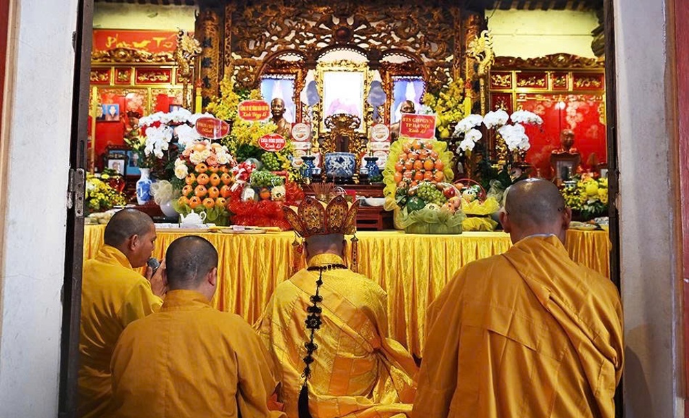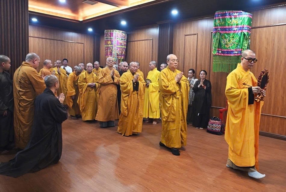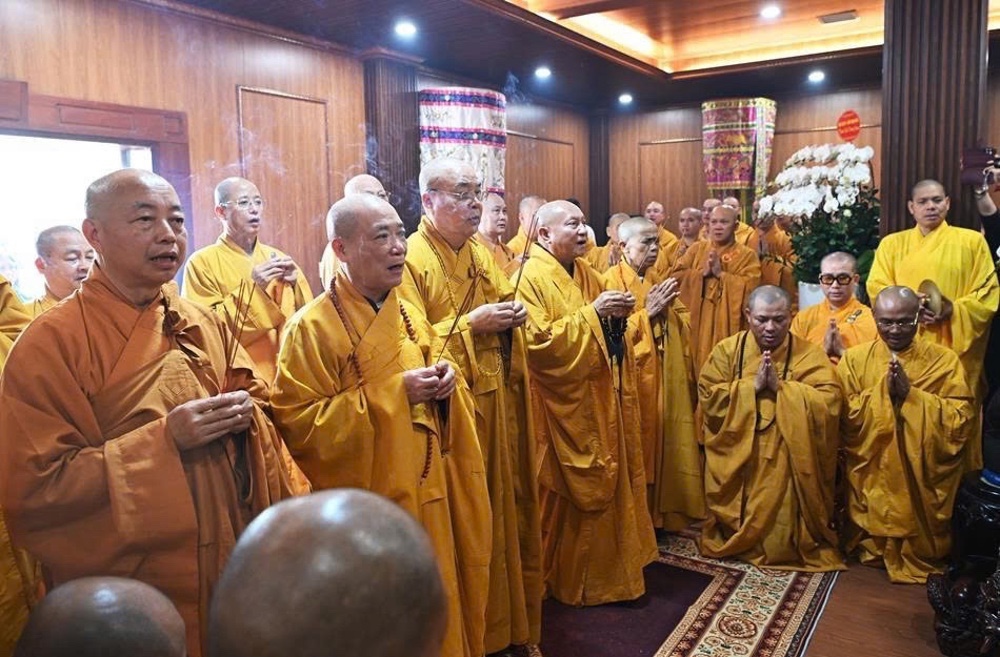 Tại bảo tháp Thọ Lâm – nơi tứ đại của cố Trưởng lão Hòa thượng được an nghỉ, chư tôn giáo phẩm và đại chúng đã thành kính thực hiện nghi thức dâng hương, niệm Phật và tụng Đại bi thần chú, cầu nguyện Giác linh cố Trưởng lão Hòa thượng cao đăng Phật quốc, bày tỏ lòng tri ân sâu sắc đối với công đức to lớn của Trưởng lão Hòa thượng, người đã cống hiến trọn vẹn cuộc đời cho sự nghiệp xiển dương chính pháp, xây dựng Giáo hội và phụng sự đất nước.