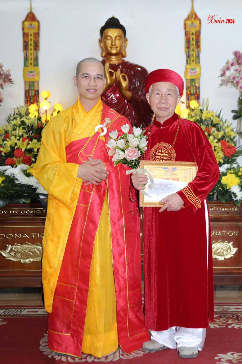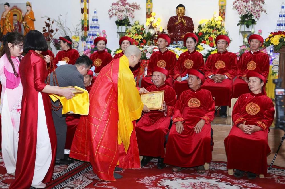 Tại buổi lễ, các Phật tử cao niên đã được tham gia các nghi thức tâm linh, nghi lễ tri ân ý nghĩa, mang đậm tính nhân văn sâu sắc, tôn vinh truyền thống, đạo lý tốt đẹp của dân tộc. Thay mặt Ban Tổ chức chương trình, Đại đức Thích Nhựt Phú đã trao Giấy chứng nhận Mừng thọ, tặng hoa và quà chúc phúc đến các Phật tử cao niên, chúc các cụ sống vui, sống khỏe, sống có ích bên con cháu, mãi là tấm gương mẫu mực cho thế hệ con cháu noi theo. Đại đức cũng nhắc nhở con cháu phải biết hiếu kính với cha mẹ. Ngoài ra, các Phật tử cao niên còn được con cháu dâng trà tri ân và đón nhận những đóa hoa tươi thắm, những món quà ý nghĩa với tình cảm tốt đẹp nhất kính dâng lên ông bà, cha mẹ.