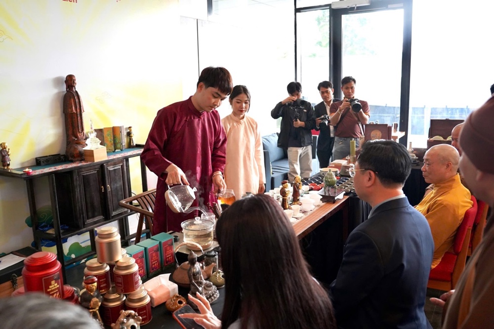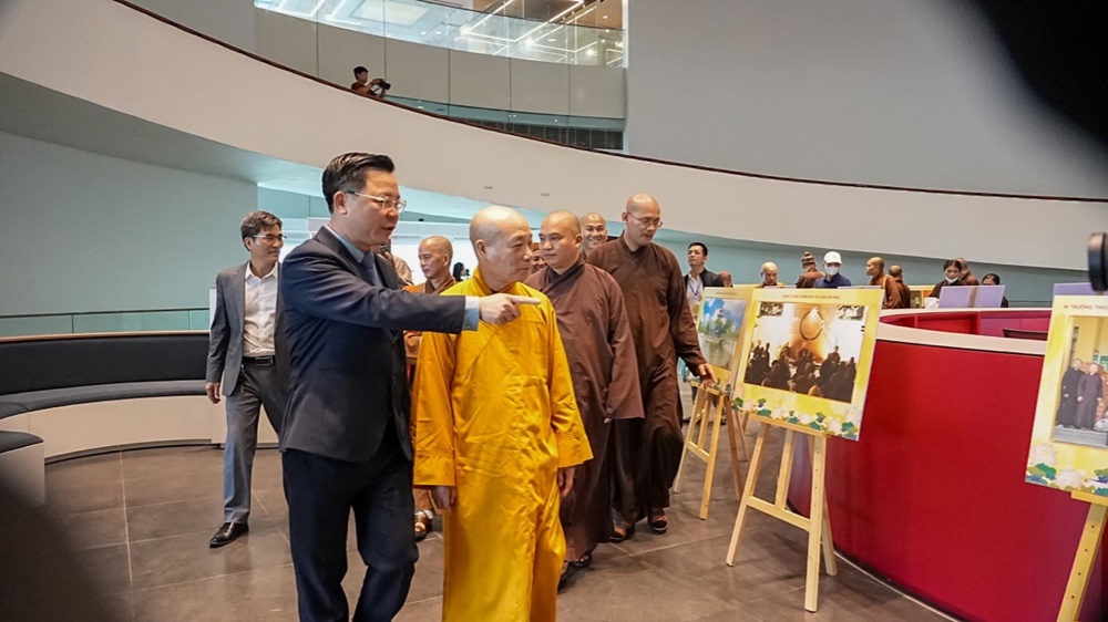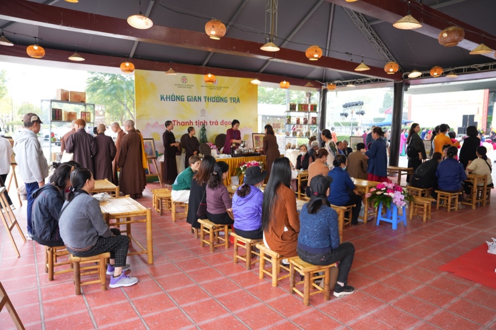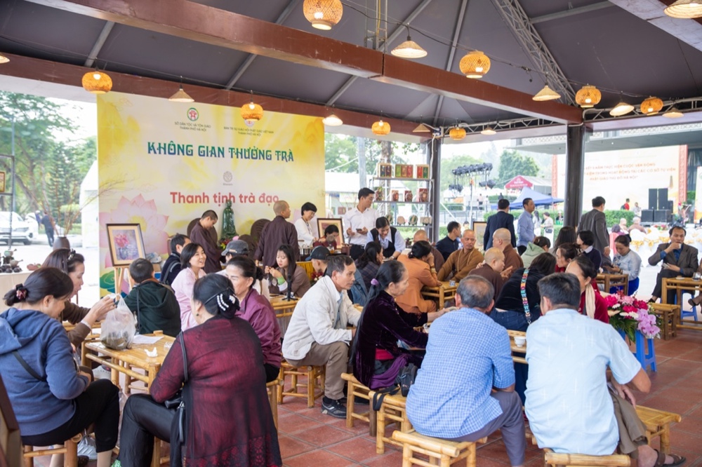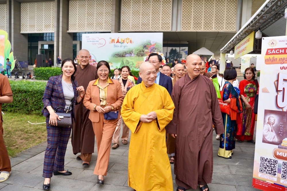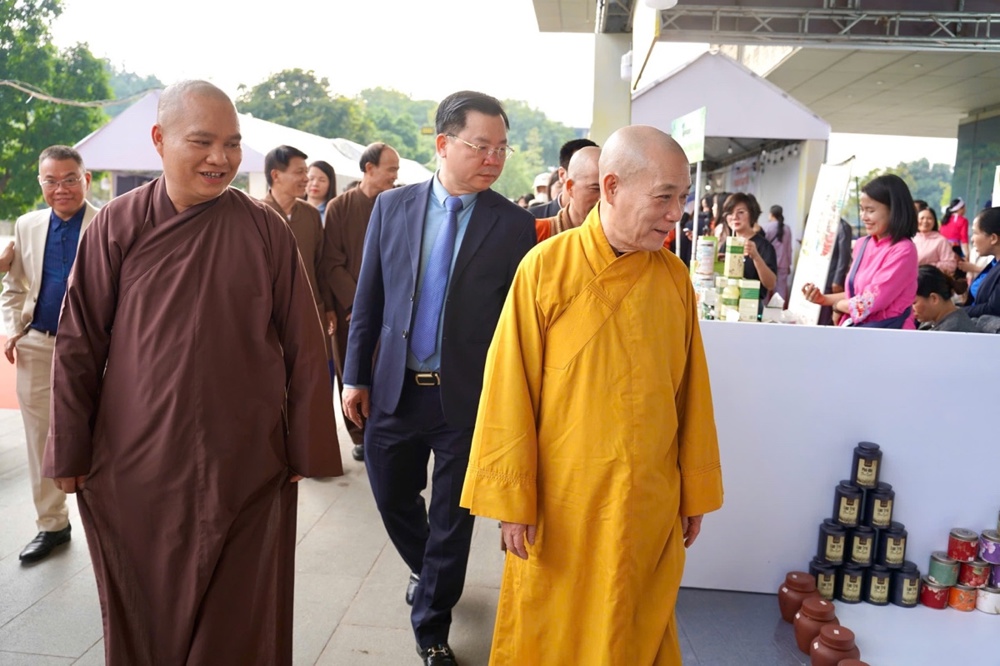 Sau bài phát biểu, đại diện chư Tôn đức và lãnh đạo khách quý cùng thực hiện nghi thức cắt băng khai mạc và tham quan không gian Triển lãm ảnh – sách – không gian văn hoá, nghệ thuật Phật giáo và lễ hội ẩm thực chay, thiền trà…