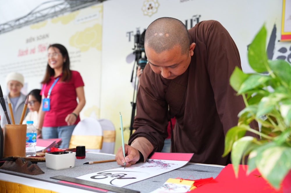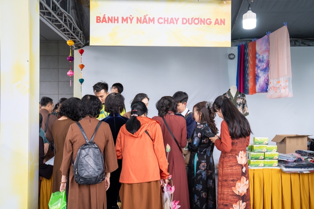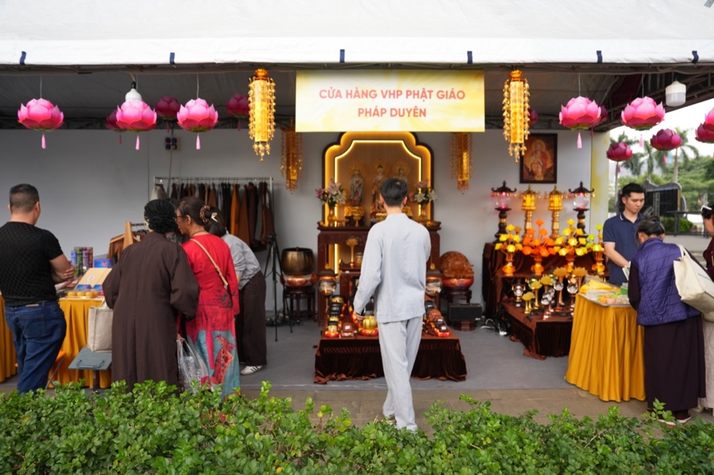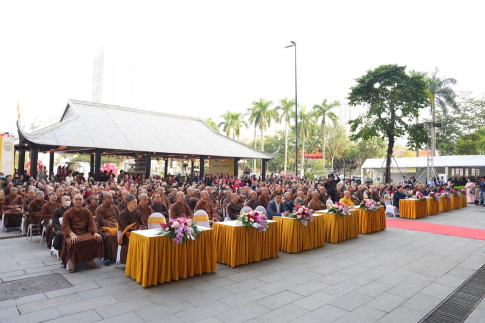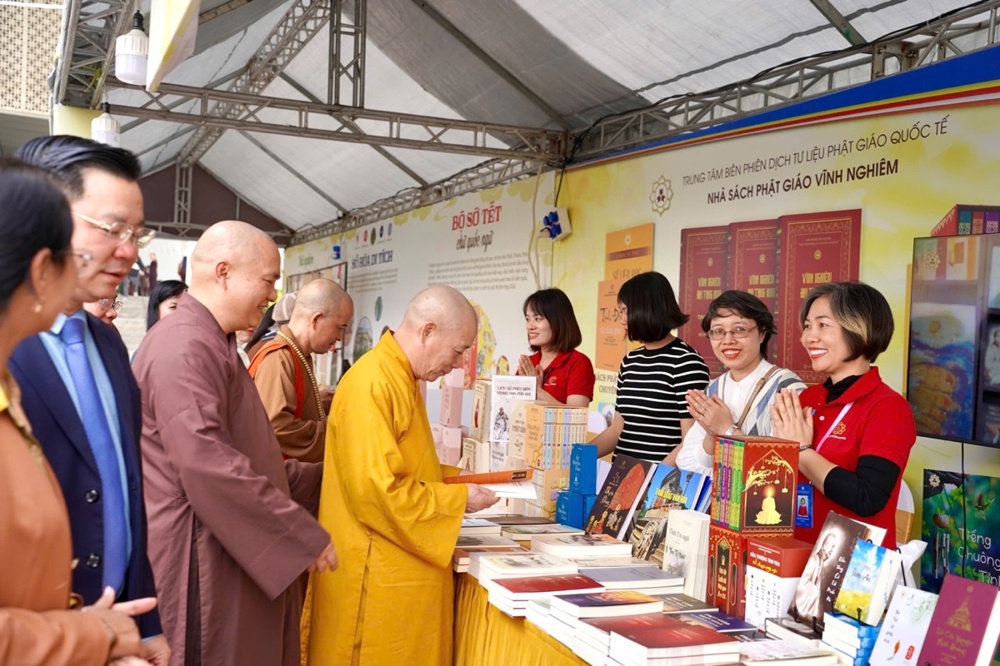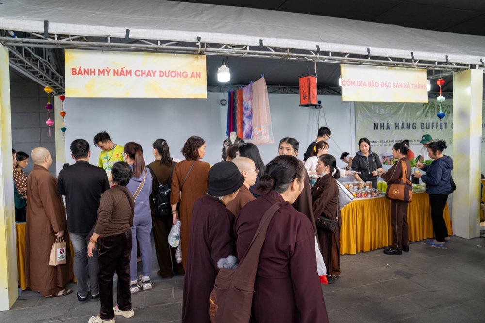 Sau bài phát biểu, đại diện chư Tôn đức và lãnh đạo khách quý cùng thực hiện nghi thức cắt băng khai mạc và tham quan không gian Triển lãm ảnh – sách – không gian văn hoá, nghệ thuật Phật giáo và lễ hội ẩm thực chay, thiền trà…