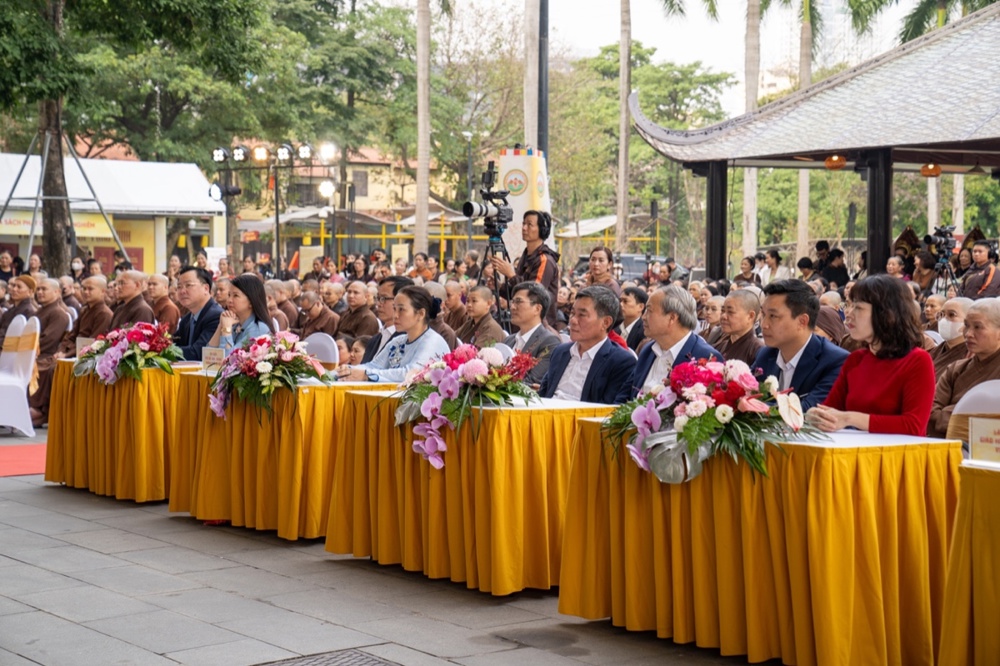Đại diện Phật giáo có: Hoà thượng Thích Bảo Nghiêm – Phó chủ tịch Hội đồng trị sự, Trưởng ban Hoằng pháp Trung ương Giáo Hội, Trưởng Ban trị sự GHPGVN TP. Hà Nội; Thượng tọa Thích Đạo Thịnh – Uỷ viên Hội đồng trị sự, Trưởng ban Thông tin truyền thông TP. Hà Nội; Thượng tọa Thích Thanh Tuyên – Uỷ viên Ban thường trực Ban trị sự GHPGVN TP. Hà Nội cùng chư tôn đức Tăng, Ni và nhân dân Phật tử trên địa bàn Hà Nội và các địa phương lân cận.
