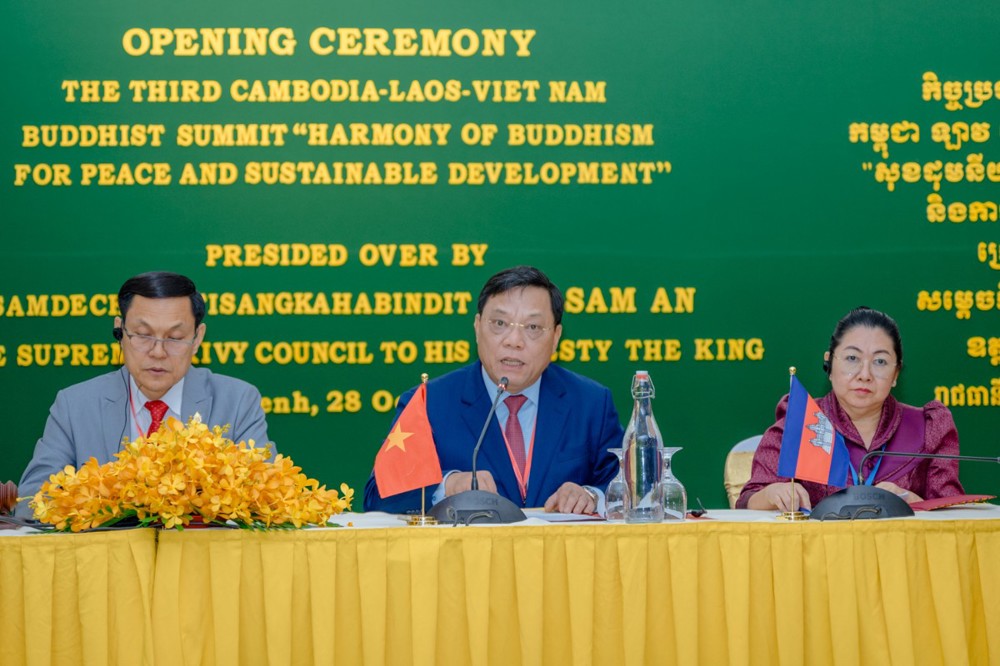 Thứ trưởng nhấn mạnh, Việt Nam – Campuchia – Lào có mối quan hệ hữu nghị, đoàn kết và hợp tác gắn bó lâu đời, trong đó Phật giáo là sợi dây gắn kết tinh thần, góp phần vun bồi hòa bình và lòng từ bi giữa nhân dân ba nước. Ông khẳng định Hội nghị Thượng đỉnh Phật giáo ba nước là diễn đàn quan trọng, thể hiện tinh thần tiếp nối Đại lễ Vesak Liên Hợp Quốc 2025, cùng hướng đến một thế giới hòa bình, an lạc và phát triển bền vững.