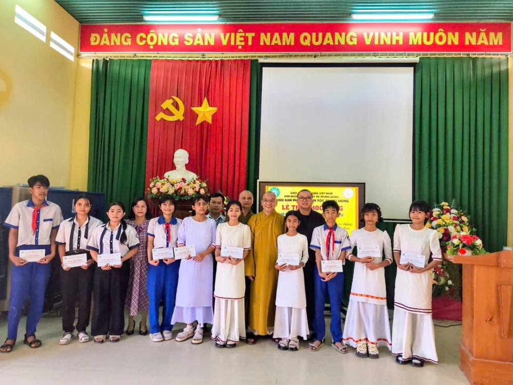 Phát biểu tại buổi lễ, chư Tôn đức đã ân cần thăm hỏi và động viên các em học sinh. Thượng tọa Thích Huệ Giáo nhấn mạnh, những phần quà này không chỉ mang giá trị vật chất mà còn là tình cảm, sự kỳ vọng của Giáo hội dành cho thế hệ trẻ vùng cao. Mong các em luôn nỗ lực vượt khó, rèn đức luyện tài để trở thành những công dân hữu ích, góp sức xây dựng bản làng và quê hương ngày càng giàu đẹp.
