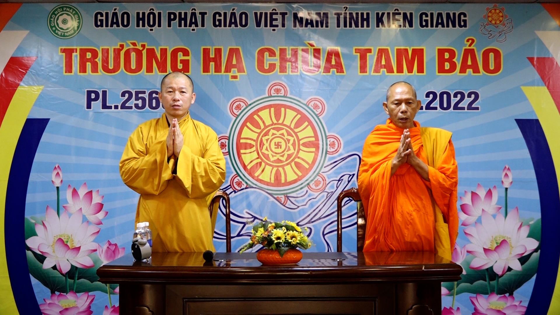 Đón tiếp đoàn tại 2 điểm trường hạ có: TT. Thích Thiện Nhựt – Phó thiền chủ trường hạ Tăng chùa Tam Bảo; Ni Trưởng Thích Nữ Như Thiện - Ủy viên PBNG TƯ, Phó BTS kiêm Trưởng Phân ban Ni giới tỉnh, quản chúng trường hạ Ni; SC. Thích Nữ Thể Liên – Uỷ viên BTS GHPGVN tỉnh cùng chư hành giả an cư tại 2 trường hạ.