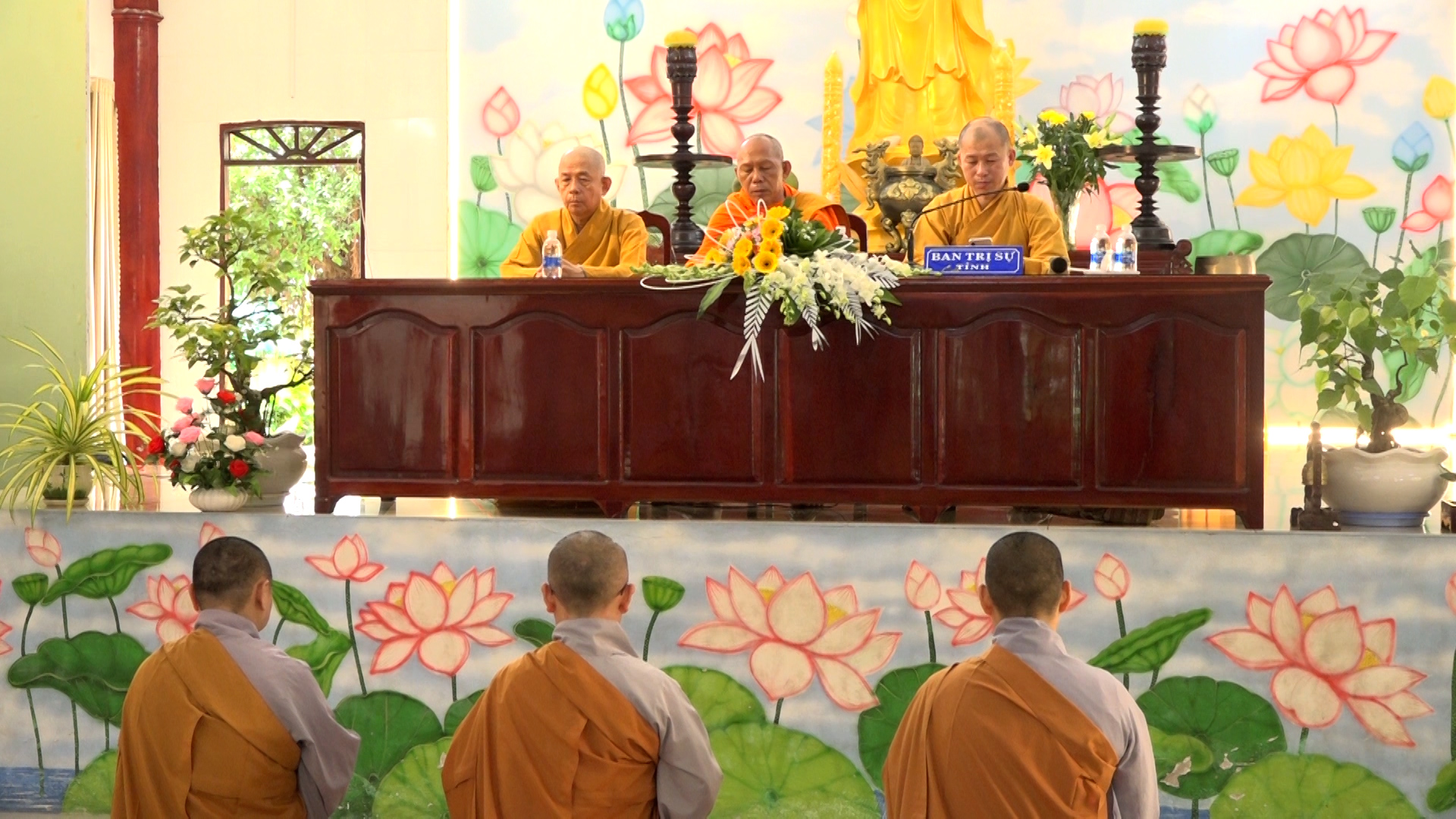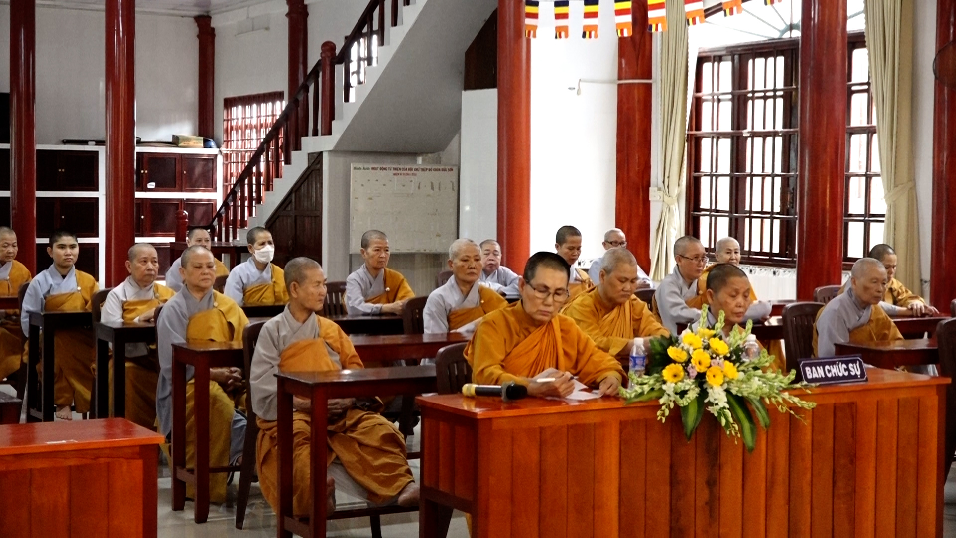 Cung đối trước chư Tôn giáo phẩm Ban Thường trực, chư Tôn đức đại diện Ban chức sự hai trường hạ đã báo cáo đôi nét về công tác tổ chức hạ trường và thông qua thời khóa tu học của chư hành giả an cư.