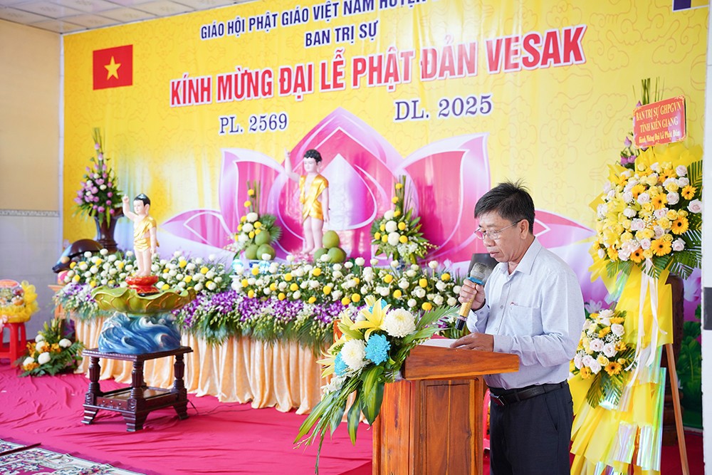 Về phía chính quyền tham dự buổi lễ có ông Nguyễn Văn Thoàng – Phó Bí thư Thường trực Huyện ủy, Chủ tịch HĐND huyện Vĩnh Thuận; bà Lê Thị Nhỏ - Ủy viên ban Thường vụ Huyện ủy, Phó Chủ tịch HĐND huyện Vĩnh Thuận; bà Phan Thị The – Phó Chủ tịch Ủy ban MTTQVN huyện Vĩnh Thuận; ông Phan Quang Đáng – Phó Trưởng ban Tuyên giáo và Dân vận Huyện ủy; ông Bùi Quang Vụ - Phó Trưởng phòng Nội vụ huyện; cùng đại diện các tôn giáo bạn về tham dự.