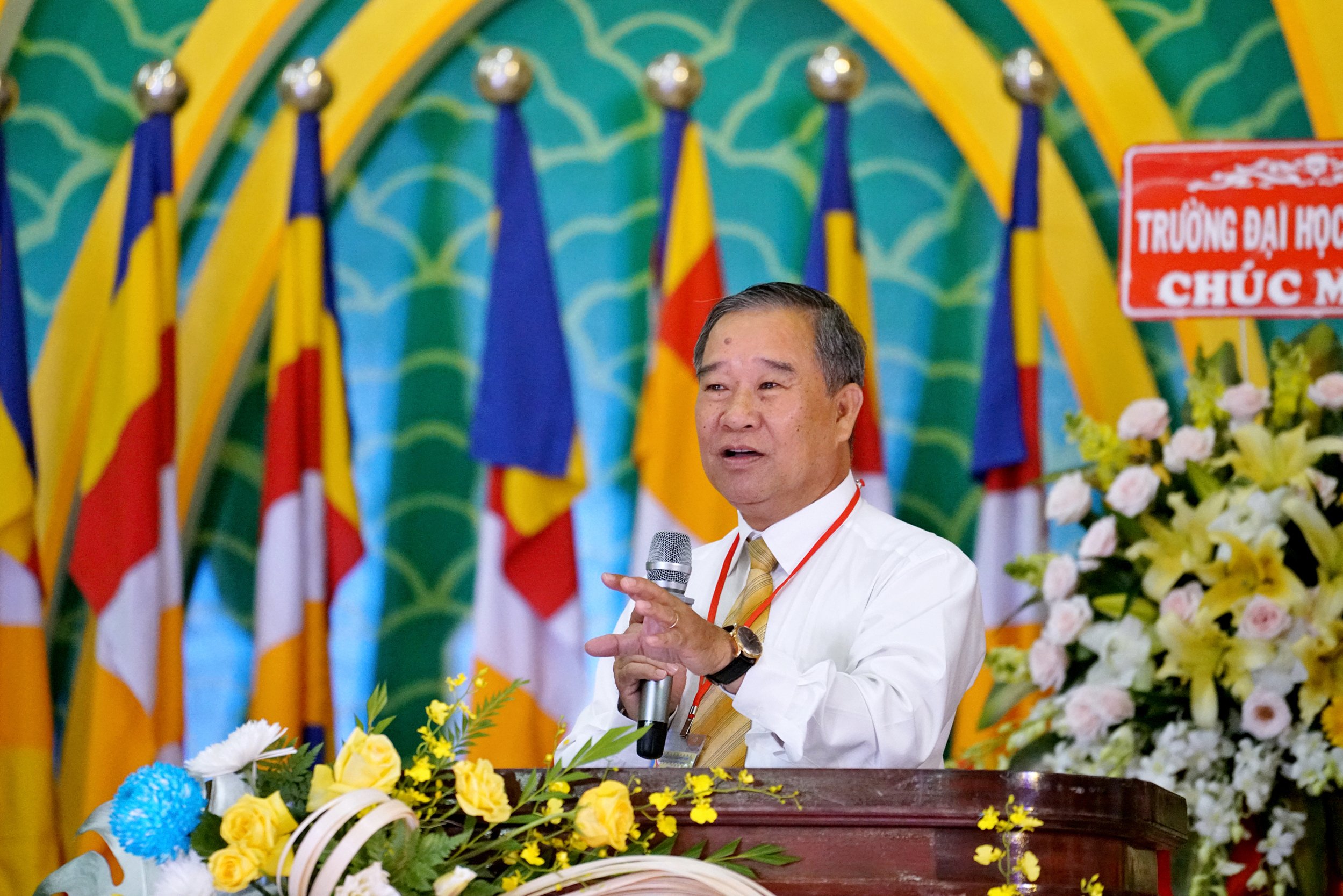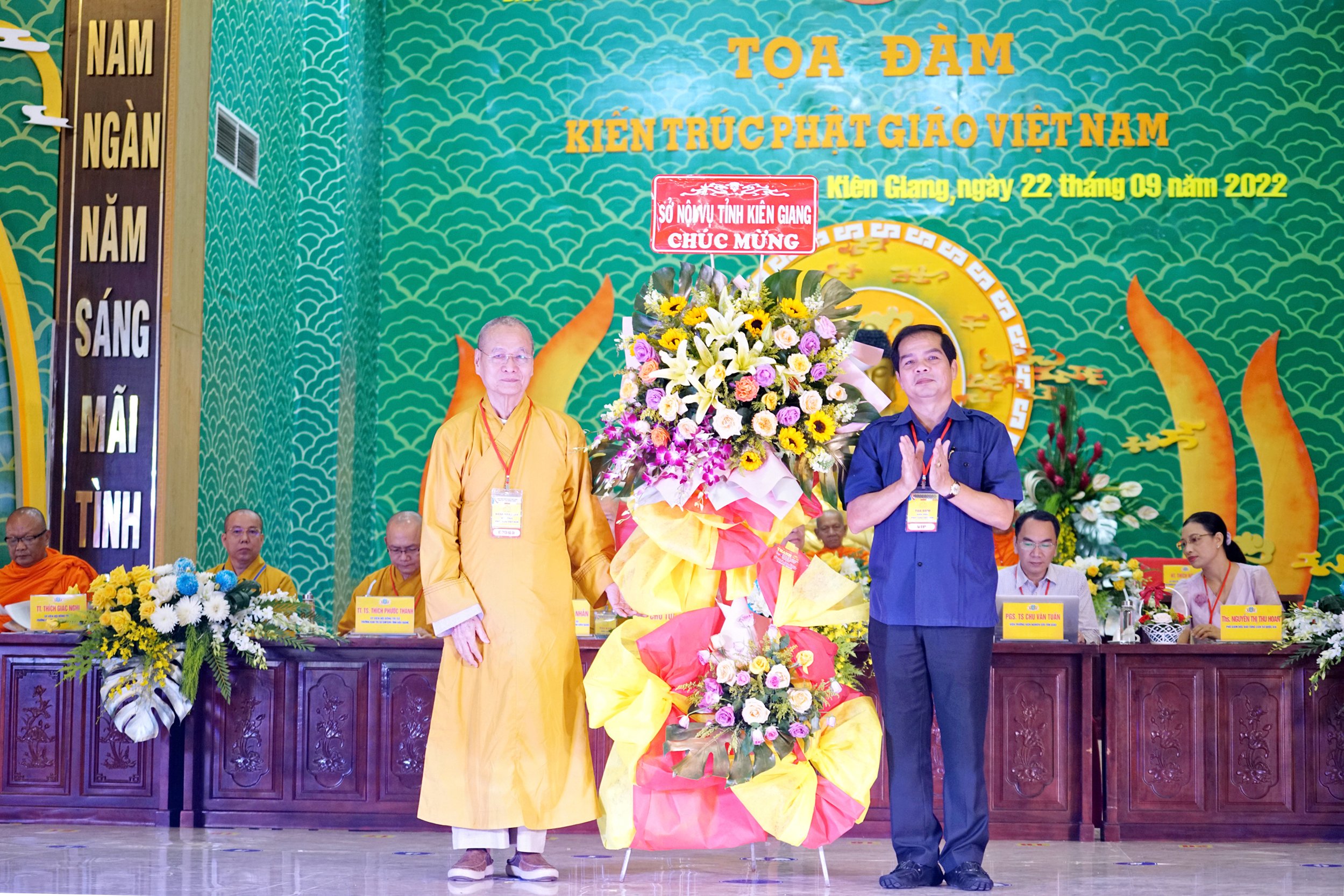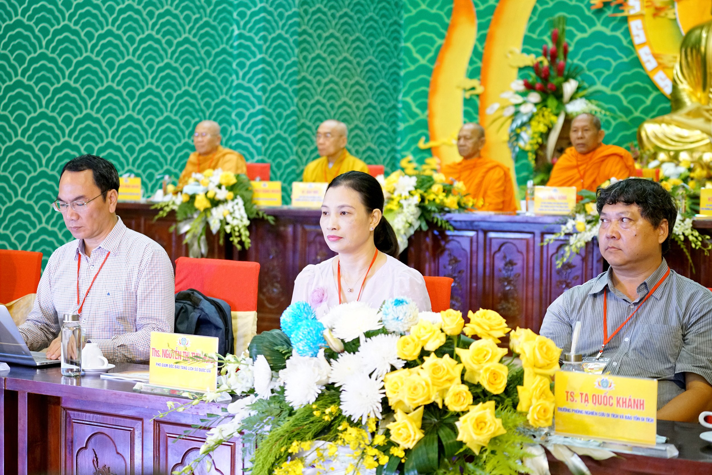 Chứng minh và chỉ đạo buổi tọa đàm có HT. Đào Như, Phó chủ tịch HĐTS; HT. Danh Đổng, Ủy viên Thường trực HĐTS, Trưởng BTS GHPGVN tỉnh Kiên Giang; TT. Thích Thọ Lạc, Ủy viên Thư ký HĐTS, Trưởng ban Văn hóa Trung ương; HT. Thích Hải Ấn, Ủy viên Thường trực HĐTS, Phó trưởng ban Thường trực Ban Văn hóa Trung ương; TT. Thích Minh Nhẫn, Ủy viên Thường trực HĐTS, Phó trưởng ban Thường trực BTS GHPGVN tỉnh Kiên Giang cùng chư tôn đức lãnh đạo Ban Trị sự các tỉnh Tây Nam Bộ, các giáo sư, tiến sĩ, học giả, nhà nghiên cứu, lãnh đạo các ban ngành tỉnh Kiên Giang.