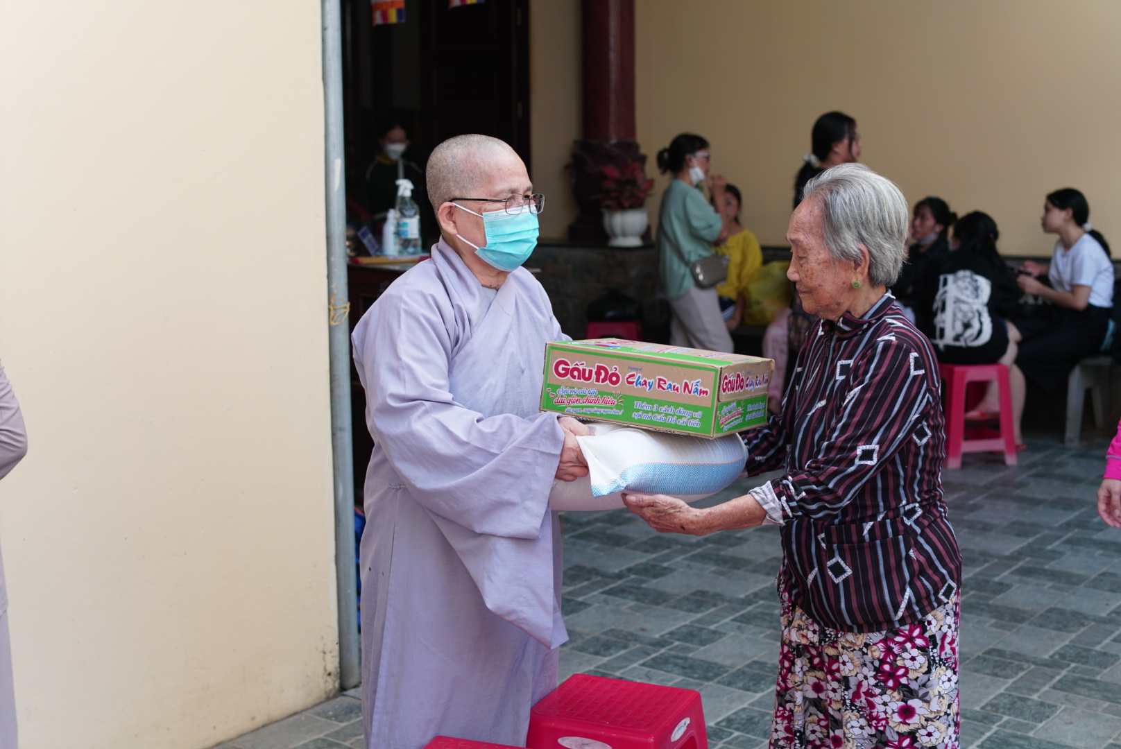 Nhằm thể hiện tinh thần người con Phật đặc biệt là nhân mùa Vu Lan – Báo Hiếu PL. 2566 – DL. 2022 Sư cô Thích Nữ Huệ Hạnh đã vận động quý Phật tử trao 200 phần quà cho bà có hoàn cảnh khó khăn trong khu vực. Với mỗi phần quà là các nhu yếu phẩm: Gạo, Mì… mỗi phần quà trị giá 250.000 đồng tổng trị giá từ thiện là 50 triệu đồng.
