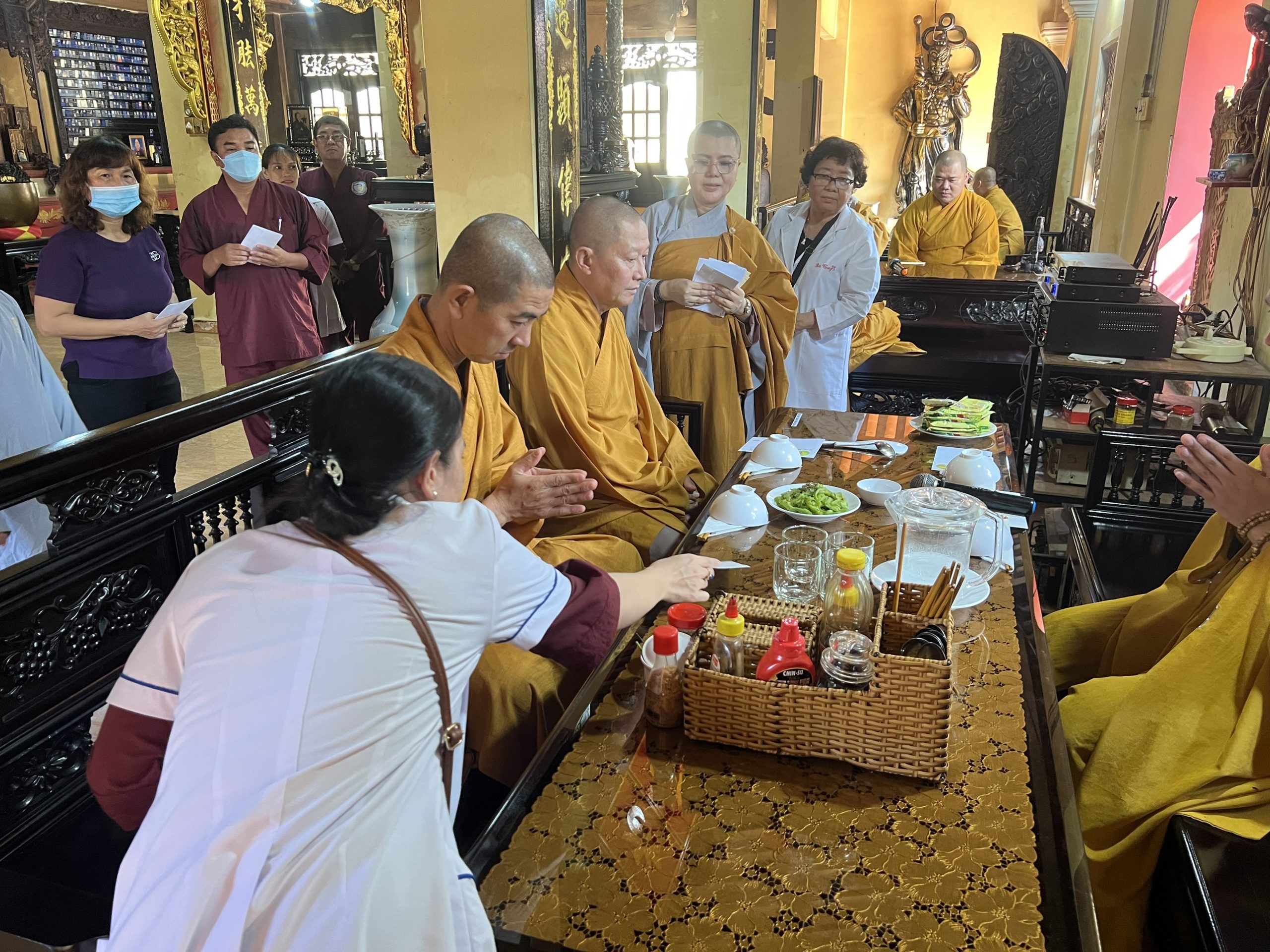 PSO - Sáng ngày 19/6/2022 (nhằm ngày 21/05 năm Nhâm Dần), SC. Thích Nữ Huệ Thiện - Phó BTS GHPHVN TP.Phú Quốc, Phó trụ trì chùa Hùng Long - Phú Quốc, làm trưởng đoàn đã hướng dẫn đoàn thiện nguyện An Việt - Y Bác sĩ TP.HCM về thăm cúng dường Trường hạ và khám bệnh cấp thuốc cho chư Tăng tại chùa Tam Bảo (TP.Rạch Giá, Kiên Giang). Tại đây, SC. Thích Nữ Huệ Thiện đã tác bạch cúng dường trước sự chứng minh của chư Tôn đức trong Ban chức sự hạ trường và quý hành giả an cư kiết hạ với những vật phẩm và tịnh tài. Tại chuyến thăm TT. Thích Thiện Nhựt có lời cảm tạ, tri ân đến SC. Thích Nữ Huệ Thiện cùng đoàn thiện nguyện An Việt y Bác sĩ TP.HCM đã không ngại đường sá xa xôi, đến thăm và cúng dường đến các hành giả an cư trong quá trình 3 tháng thúc liễm thân tâm, trau dồi Tam vô lậu học.