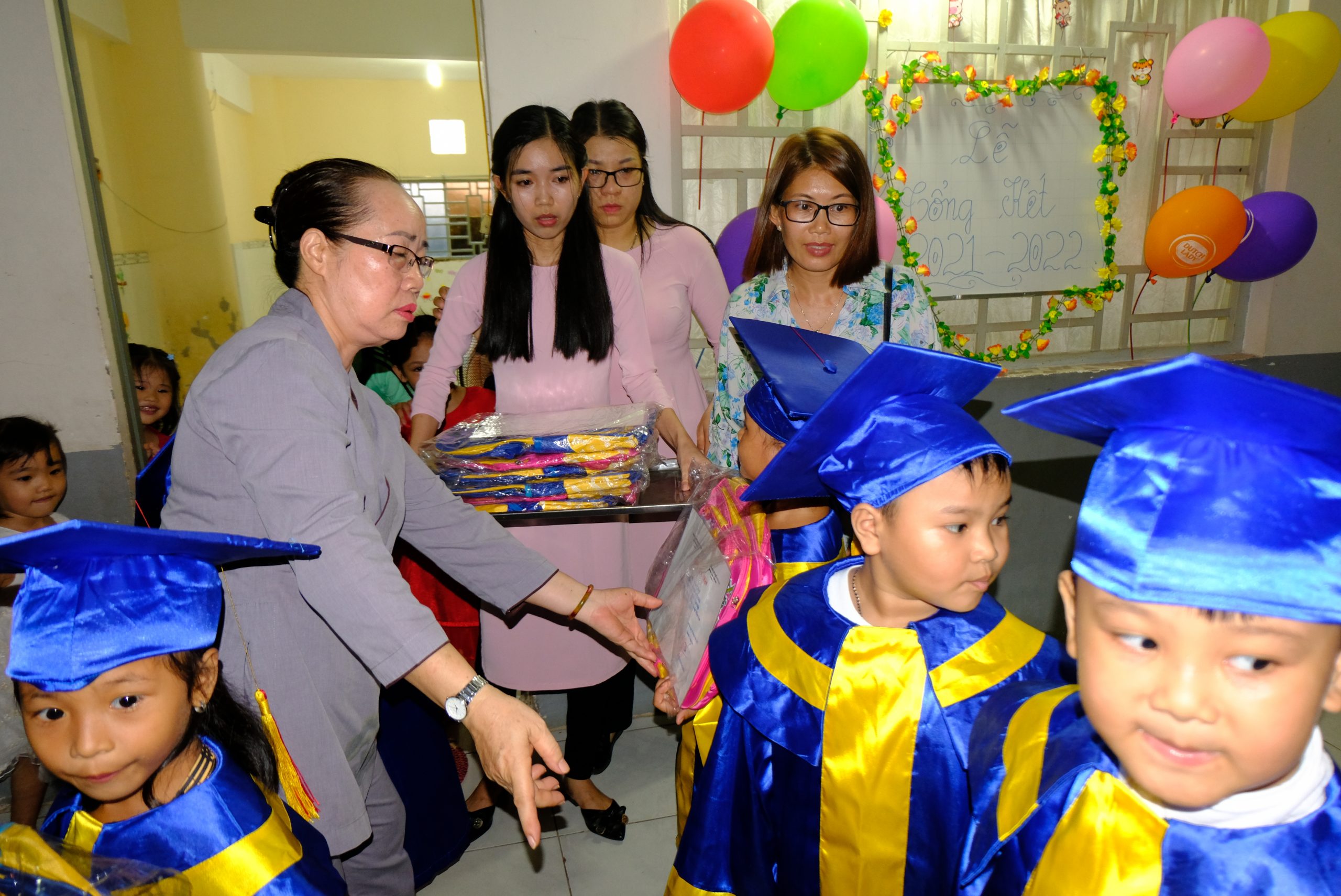 Tham dự buổi tổng kết có: ĐĐ. Thích Tuệ Giải – Trưởng ban Từ thiện xã hội GHPGVN tỉnh, Phó Giám đốc Trung tâm TTXH Phật Quang; Phật tử Chánh Quý – Phó giám đốc Trung tâm TTXH Phật Quang, phụ trách nhà trẻ Nhân Ái cùng quý vị trong Ban bảo trợ và phụ huynh đồng tham dự.