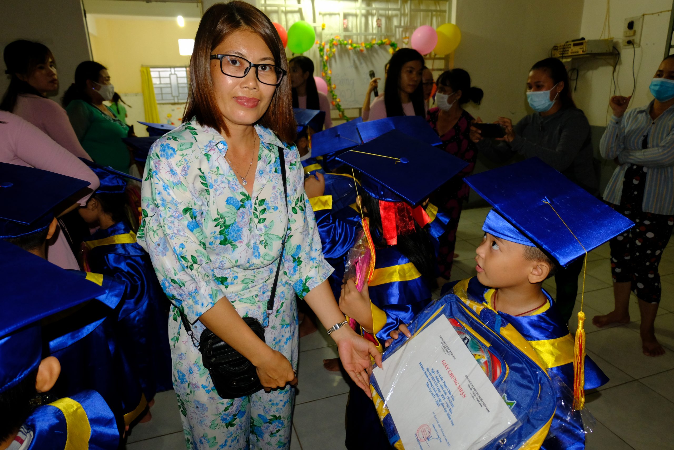Thay mặt cho Ban giám đốc điều hành Trung tâm, Phật tử Chánh Quý đã tổng kết tình hình năm học trong năm 2021-2022. Năm nay nhà trẻ nhân ái thu nhận 67 trẻ và chia được 3 nhóm lớp 1 nhóm nhà trẻ và 2 lớp mẫu giáo, do năm nay diễn biến dịch đang được phục hồi nên các bé chỉ học được 1 học kì, chương trình học của các bé được thực hiện dựa trên 300 tiêu chí để hoàn thành giáo dục mầm non theo ngành giáo dục. Đối với nhóm mẫu giáo lớn đã có 18 bé đã hoàn thành chương trình để chuyển lên lớp 1. Phật tử Chánh Quý cũng cho biết kinh phí nuôi dạy trẻ năm nay của nhà trẻ Nhân Ái là gần 700 triệu đồng.