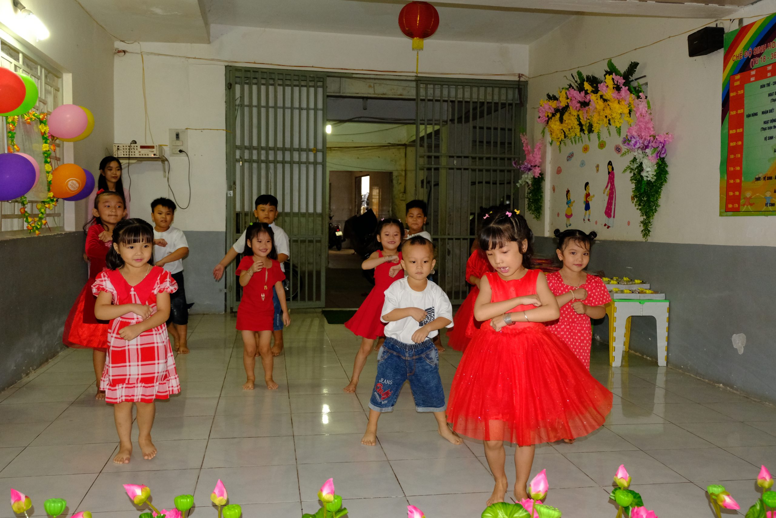 Sau đó là phần văn nghệ của các bé, và những phần quà của Ban giám đốc nhà trẻ gửi đến các bé.