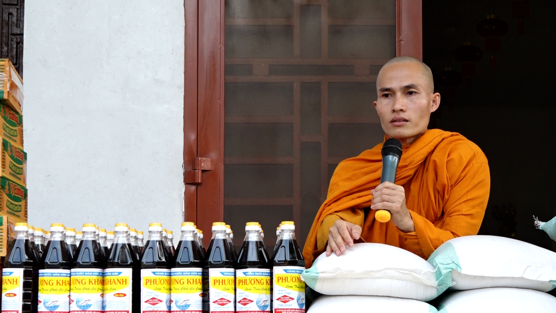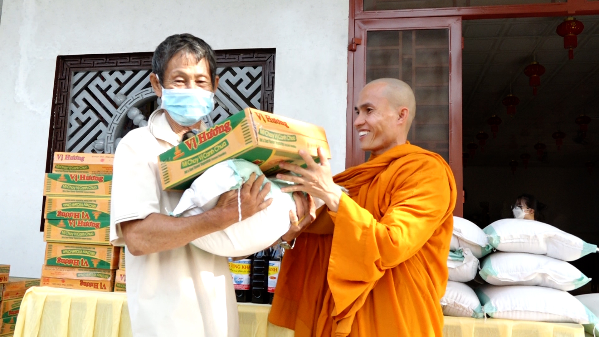 Tại đây, ĐĐ. Thích Minh Hậu - Ủy viên BTS GHPGVN tỉnh cùng các Phật tử tịnh xá Ngọc Sơn gửi đến 200 phần quà cho bà con có hoàn cảnh khó khăn, người già neo đơn, tàn tật, người bán vé số, công nhân, lao động nghèo. Mỗi phần quà trị giá 250 ngàn đồng gồm 10 ký gạo, 1 thùng mì, 1 chai nước mắm, tổng kinh phí từ thiện là 50 triệu đồng.