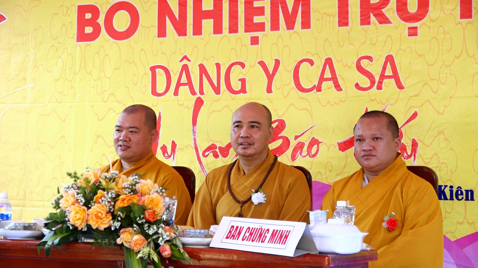 Chứng minh buổi lễ có ĐĐ. Thích Minh Thành – Trưởng ban Hướng dẫn Phật tử GHPGVN tỉnh Kiên Giang, Trưởng ban BTS GHPGVN huyện Kiên Lương; ĐĐ. Thích Tuệ Tánh – Chánh Văn phòng BTS kiêm Trưởng ban Thông tin truyền thông GHPGVN tỉnh; ĐĐ. Thích Tuệ Định – Trưởng ban Phật giáo Quốc tế GHPGVN tỉnh cùng các chư Tôn đức Tăng Ni BTS huyện Kiên Lương, trụ trì các tự viện trong địa bàn tỉnh.