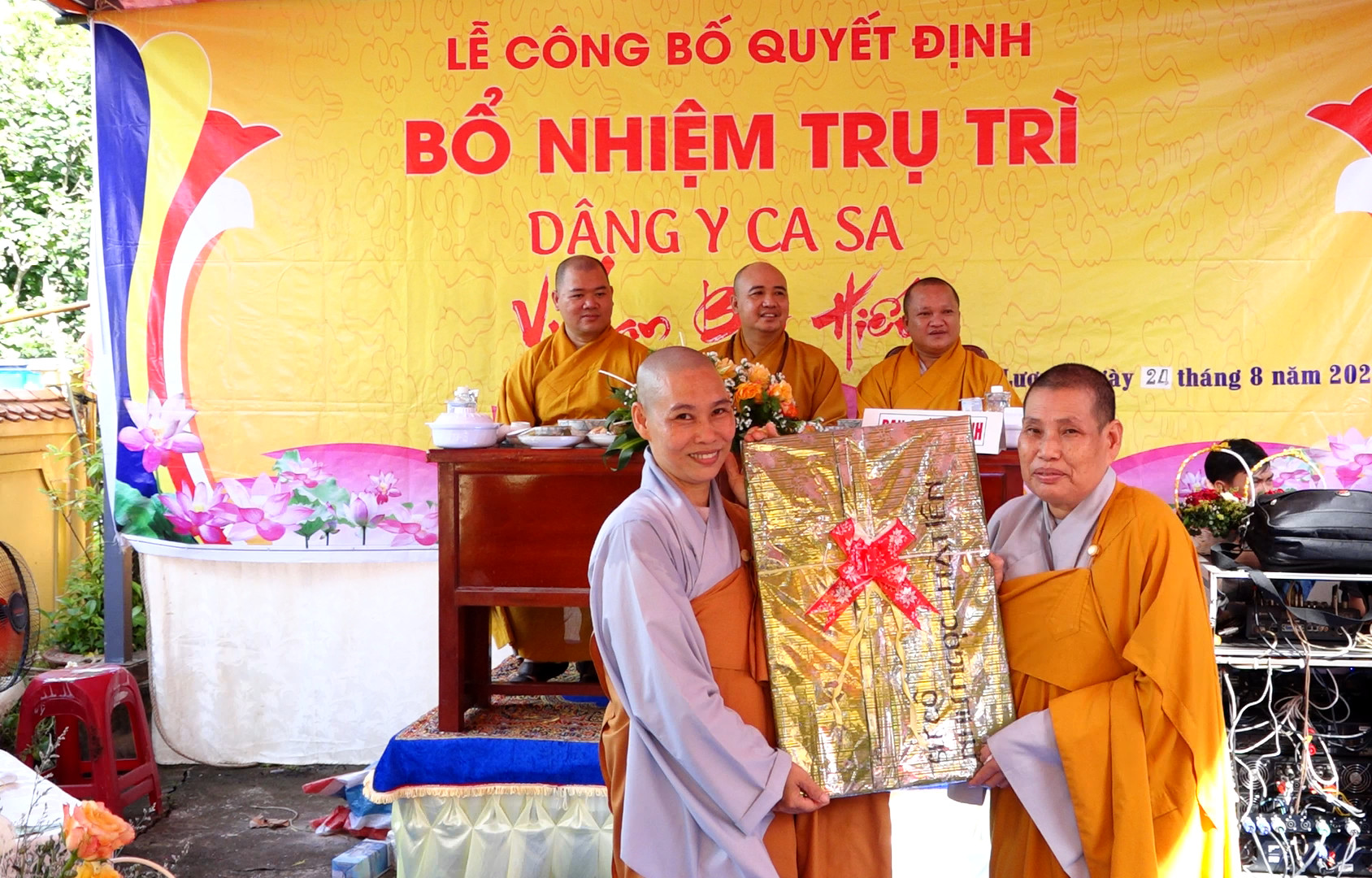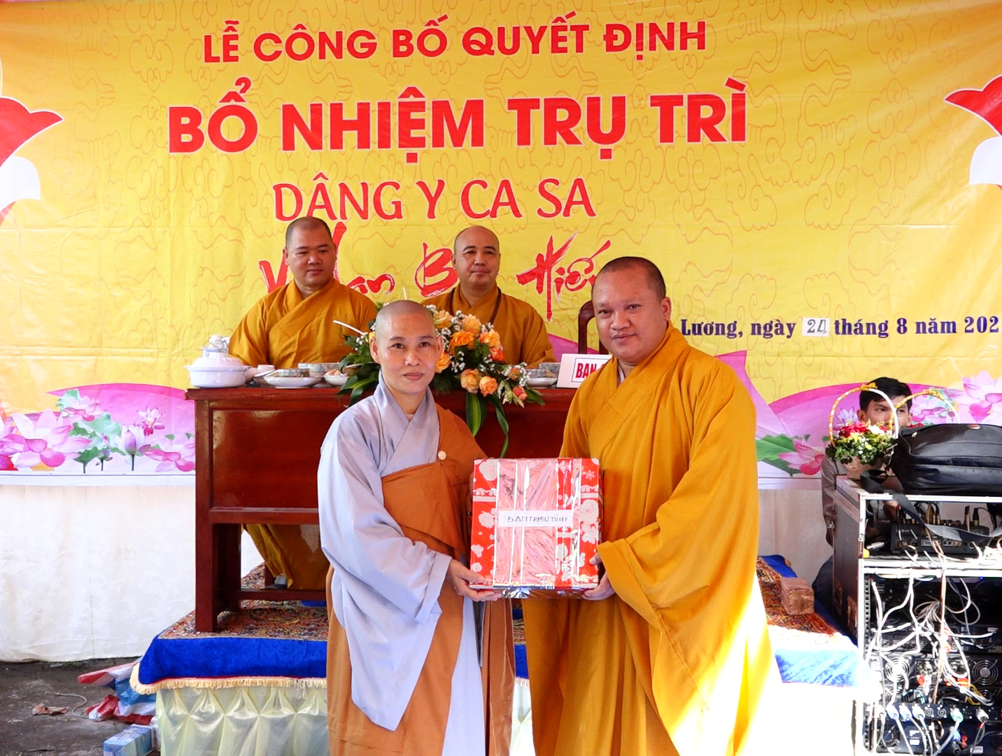 Thay mặt cho BTS GHPGVN tỉnh, ĐĐ. Thích Minh Thành đã trao quyết định bổ nhiệm cho SC. Thích Nữ Huệ An trong niềm hân hoan của chính quyền, Phật tử tại đảo Hòn Heo.