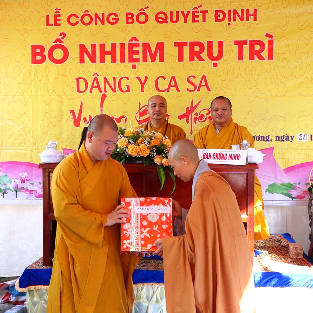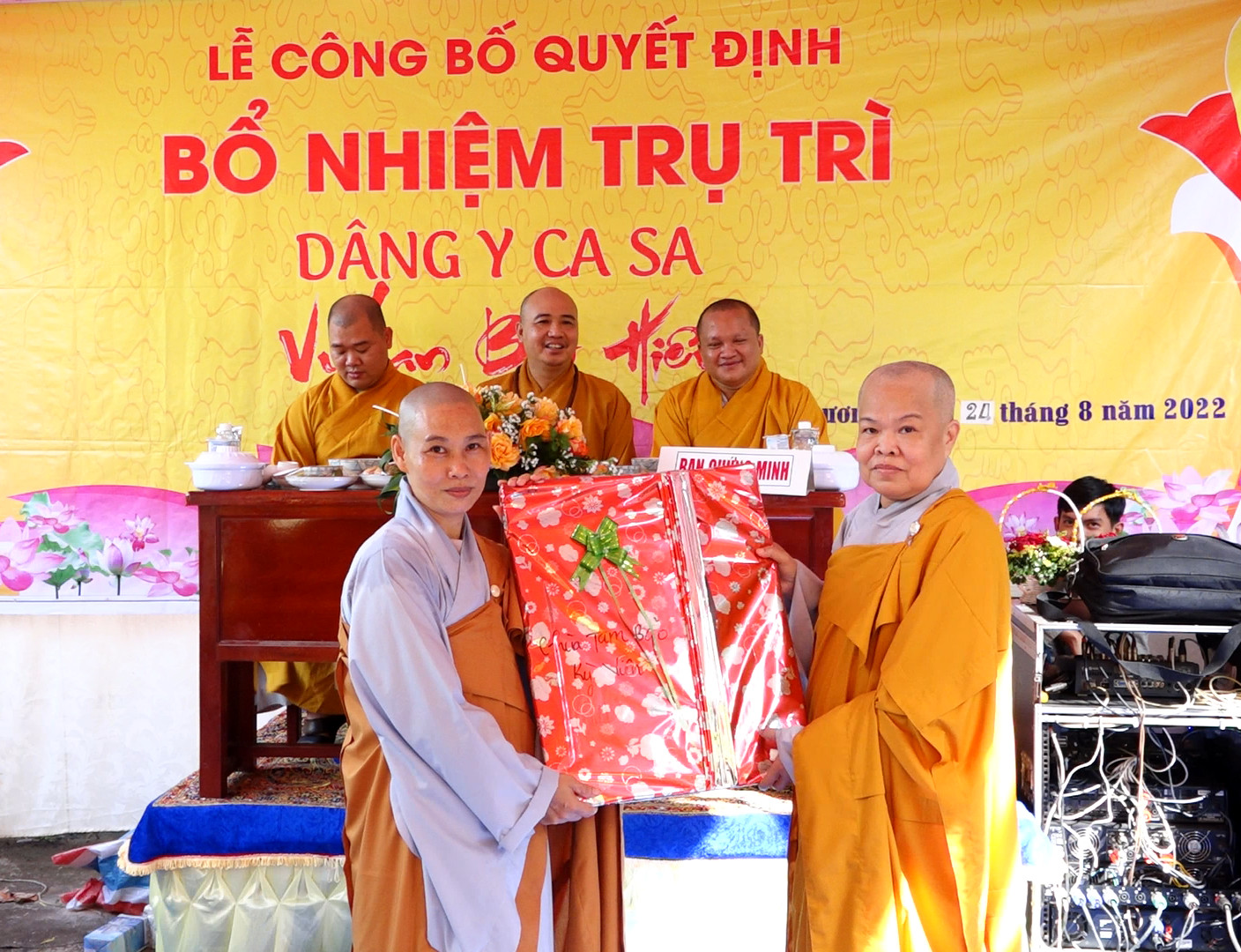 Cung đối trước chư Tôn đức Chứng minh và đại diện chính quyền địa phương, Sư cô tân trụ trì đã đảnh lễ phát nguyện, với sứ mệnh cao cả và phụng trì và chu toàn ngôi Tam Bảo đúng với kỳ vọng của chư Tôn đức và tín đồ Phật tử nơi đây, thực hiện theo đúng Hiến chương của GHPGVN và pháp luật Nhà nước quy định, hướng dẫn hàng Phật tử sống tốt đời đẹp đạo.