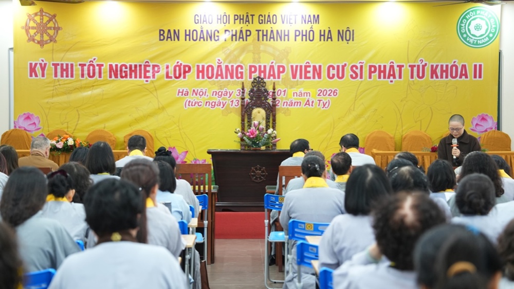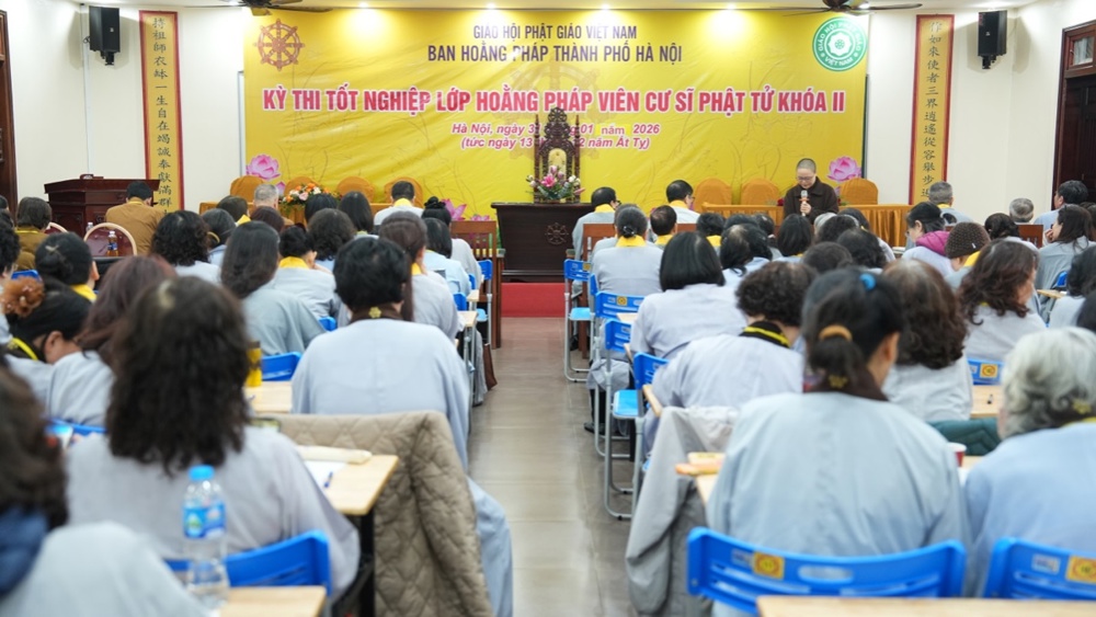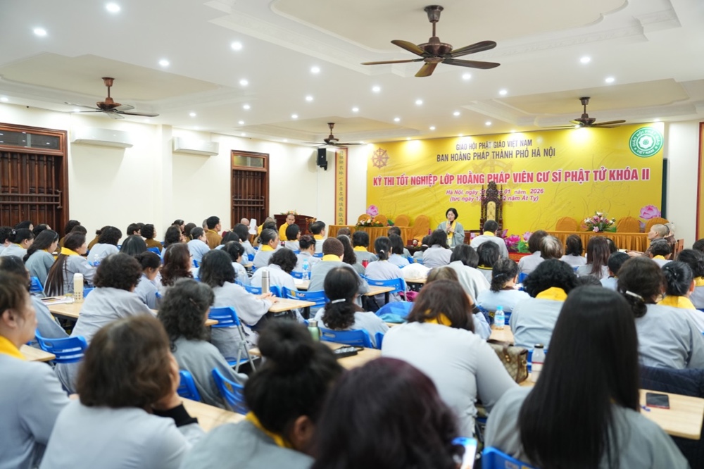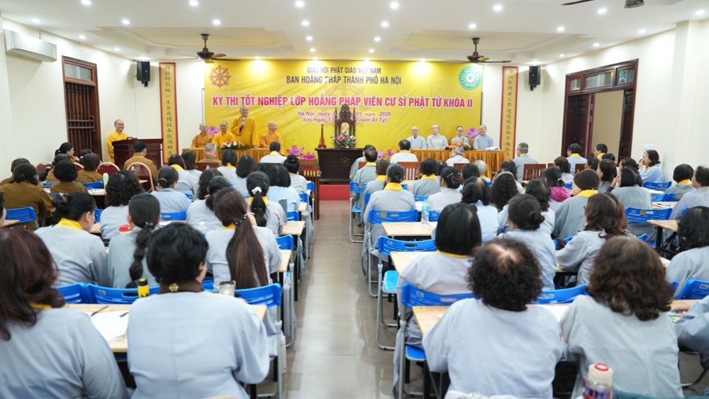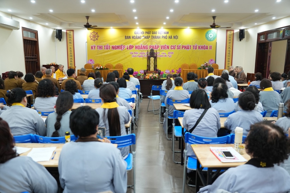 Sáng ngày 31/1, nhằm ngày 13/12 năm Ất Tỵ, tại chùa Vạn Phúc (Sóc Sơn, Hà Nội) đã diễn ra Kỳ thi tốt nghiệp lớp Hoằng pháp viên Cư sĩ Phật tử khóa II (niên khóa 2022 – 2025) cho 163 học viên đủ điều kiện sau 3 năm tu học nghiêm túc và tinh tiến. Kỳ thi nhằm đánh giá kết quả học tập, năng lực hoằng pháp của các học viên, đồng thời là cơ sở để xét cấp Giấy chứng nhận tốt nghiệp, ghi nhận sự nỗ lực tu học và phát nguyện tiếp nối con đường hoằng dương chính pháp, phụng sự Tam Bảo, lợi đạo ích đời.