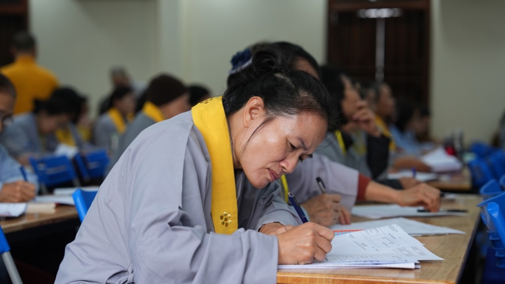 Đồng thời, Thượng tọa cũng gửi lời động viên, sách tấn đến toàn thể học viên, mong quý vị giữ vững bồ đề tâm, phát huy những gì đã được học hỏi, tự tin và an ổn hoàn thành bài thi với kết quả tốt đẹp, qua đó làm nền tảng vững chắc cho con đường tu học và phụng sự đạo pháp trong thời gian tới.