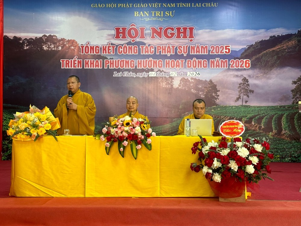 Sau phát biểu khai mạc của Hòa thượng Thích Thanh Huân, Thượng tọa Thích Minh Tuân – Phó Chánh Thư ký, Chánh Văn phòng Ban Trị sự đã trình bày Báo cáo tổng kết công tác Phật sự năm 2025 và phương hướng hoạt động năm 2026. Báo cáo nêu rõ: trong năm 2025, dưới sự hướng dẫn của Trung ương GHPGVN, sự quan tâm, tạo điều kiện của các cấp ủy Đảng, chính quyền và tinh thần đoàn kết, hòa hợp của Tăng Ni, Phật tử, công tác Phật sự trên địa bàn tỉnh Lai Châu đã đạt được nhiều kết quả quan trọng.