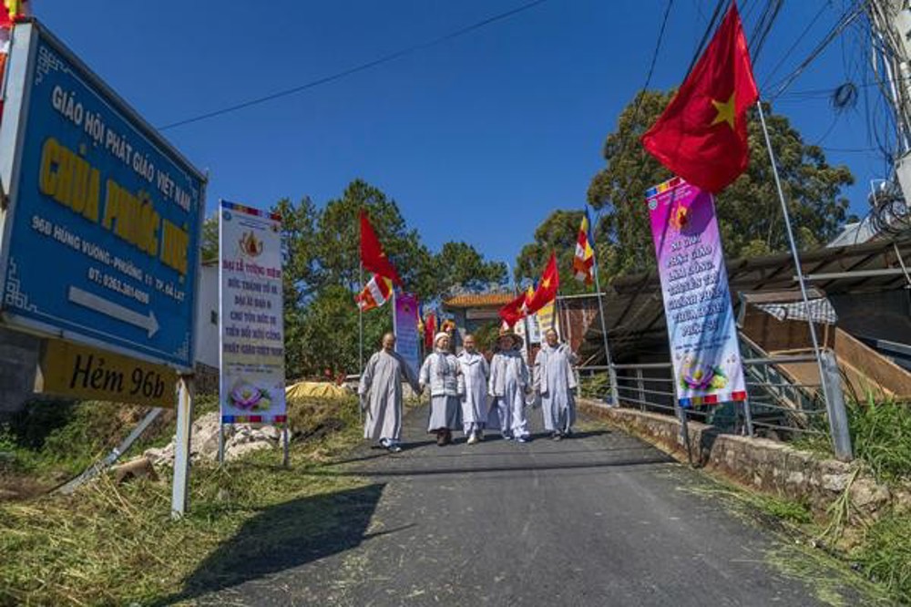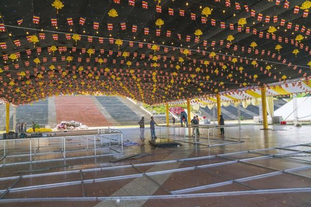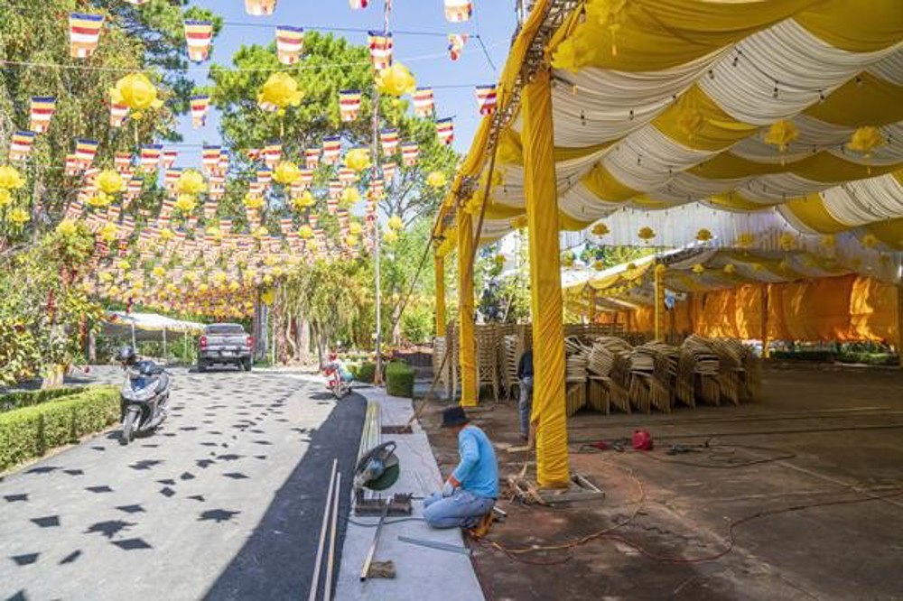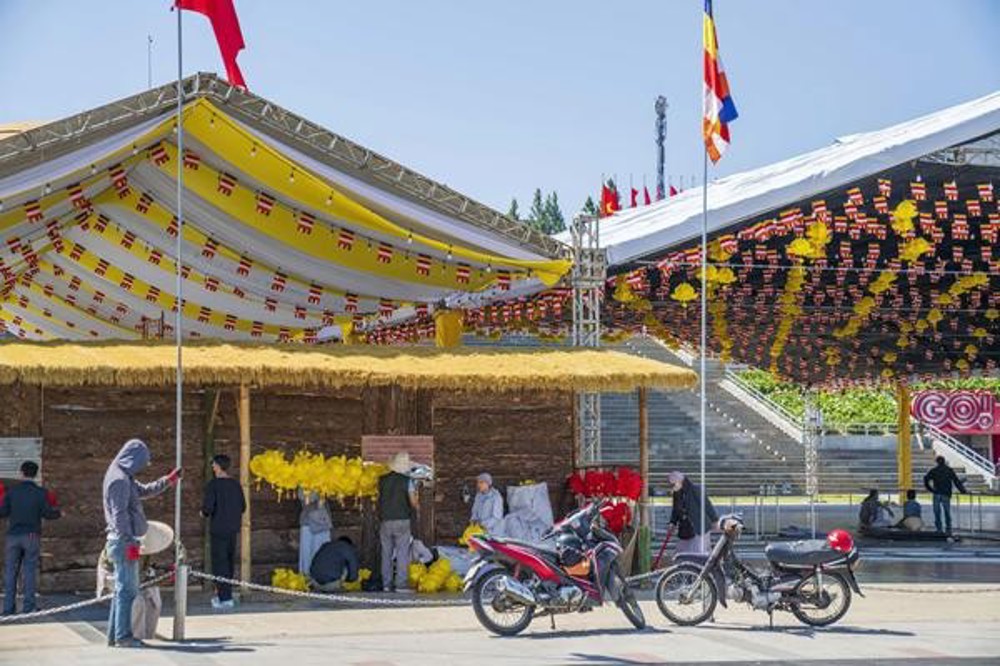 Tại chùa Phước Huệ khảo sát các khu vực đón tiếp, không gian sự kiện nơi dâng hương tưởng niệm Đức Thánh Tổ, các khu vực trai đường dành cho chư Tôn đức và đại biểu về tham dự, cờ đèn, pano đã hoàn thiện 90%. Đặc biệt, tại Quảng trường Lâm Viên, công tác trần thiết đang được triển khai khẩn trương, đẩy nhanh tiến độ dựng rạp, trang trí cờ, đèn, pano, …