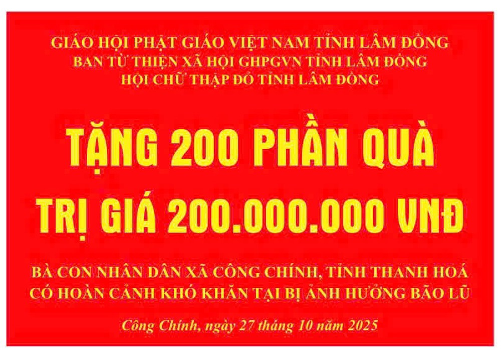 PSO- Trong những ngày cuối tháng 10 năm 2025, khi miền Trung và một số tỉnh miền Bắc vẫn còn oằn mình gánh chịu hậu quả nặng nề của bão lũ, với tấm lòng “lá lành đùm lá rách”, Ban Từ thiện Xã hội Phật giáo tỉnh Lâm Đồng đã khởi hành chuyến cứu trợ và sẻ chia yêu thương đến với đồng bào vùng thiên tai.