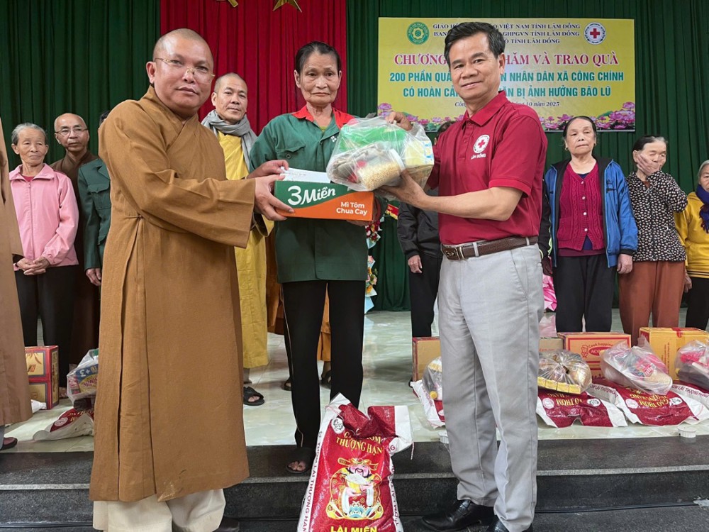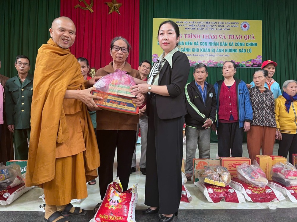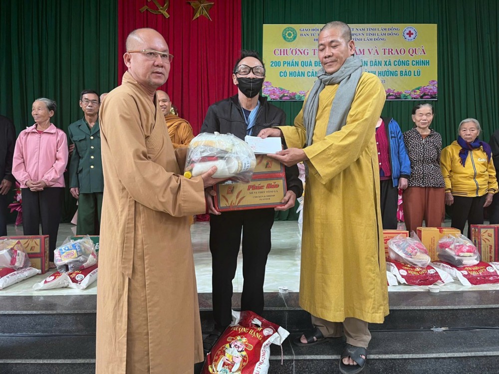 Dưới sự hướng dẫn của Thượng tọa Thích Quảng Cao – Ủy viên Thường trực, Trưởng Ban Từ thiện Xã hội GHPGVN tỉnh Lâm Đồng, Thượng tọa Thích Chiếu Ý; Ni sư Thích nữ Hạnh Khai- Đồng phó thường trực ban; Thượng tọa Thích Từ Minh; Thượng tọa Thích Chiếu Nhã; Thượng tọa Thích Giác Hiện; Thượng tọa Thích Vĩnh Phúc; Thượng tọa Thích Huệ Vân; Thượng tọa Thích Bổn Như; Ni sư Thích nữ Hạnh Pháp; Ni sư Thích nữ Chơn Huy; Ni sư Thích nữ Hạnh Trí- Đồng phó ban cùng chư Tôn đức Tăng Ni và Phật tử, đoàn đã vượt hàng ngàn cây số, mang theo những phần quà nghĩa tình, gửi trọn niềm thương đến bà con đang gặp khó khăn nơi các tỉnh Hà Tĩnh, Nghệ An, Thanh Hóa, Thái Nguyên, Thừa Thiên Huế và Đà Nẵng.