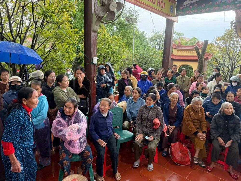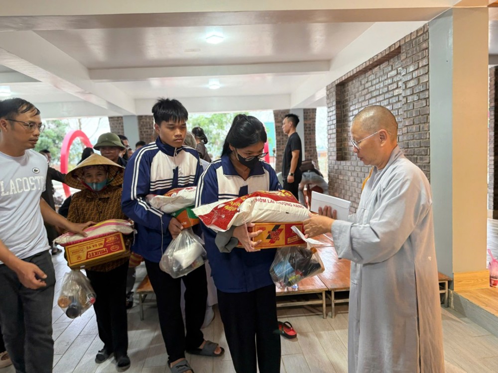 Trưa cùng ngày, đoàn ghé Chùa Hộ Lệnh (xã Điềm Thụy, tỉnh Thái Nguyên) – nơi từng là điểm tiếp tế lương thực trong đợt lũ vừa qua – trao 86 phần quà trị giá 75 triệu đồng.