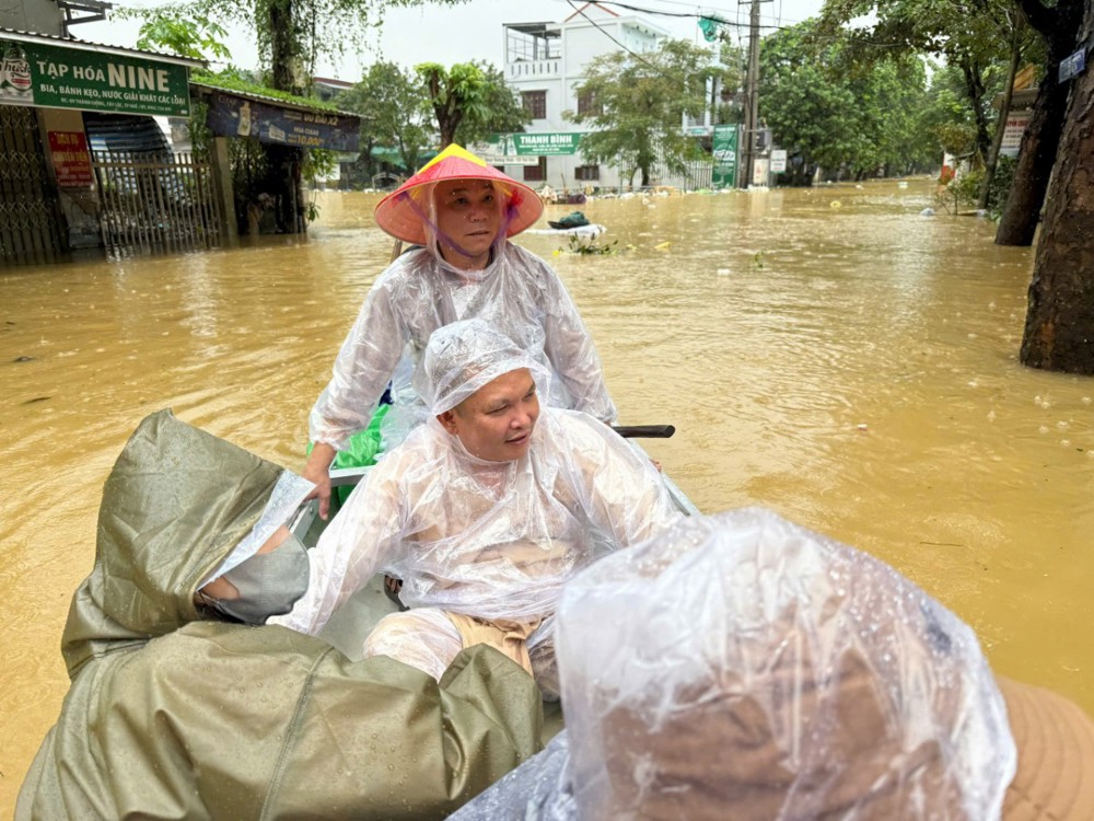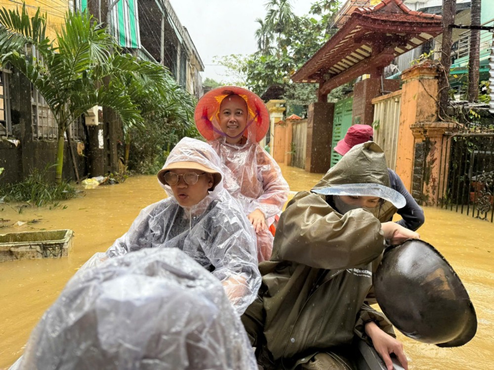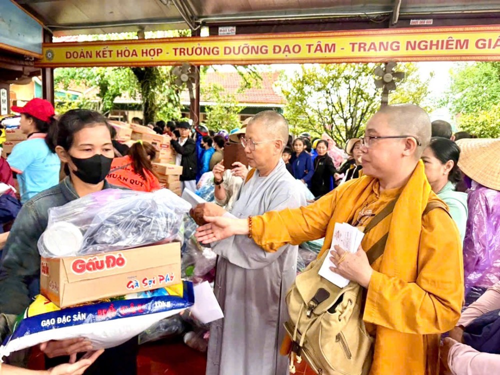 Tại Chùa Hòa Bình (phường Phú Xuân, TP. Huế), đoàn trao 100 phần quà (gạo và tiền mặt) đến các hộ dân chịu ảnh hưởng nặng bởi bão lũ.Chiều cùng ngày, đoàn đã đến Chùa Viên Giác (phường Hội An, TP. Hội An, Đà Nẵng), thăm hỏi, động viên và trao 300 phần quà gồm gạo và tiền mặt đến bà con địa phương.