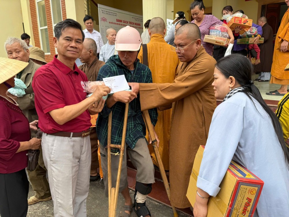 Sáng 26/10/2025, đoàn đến Chùa Yên Lạc (xã Thiên Cầm, tỉnh Hà Tĩnh), trao tặng 300 phần quà (gồm gạo, mì, cá, nước mắm và nhu yếu phẩm hằng ngày) với tổng trị giá 300 triệu đồng.