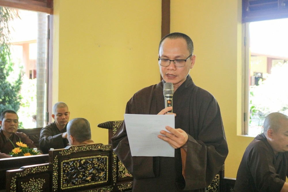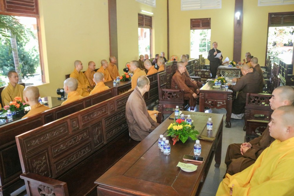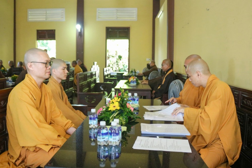 Phát biểu khai mạc cuộc họp, Thượng tọa Thích Thông Triêm đã triển khai kế hoạch tổng thể về công tác khảo thí giới tử, nêu rõ nội dung, hình thức khảo thí cũng như yêu cầu nghiêm túc, công bằng và đúng theo quy định của Giới luật, góp phần bảo đảm chất lượng truyền trao giới pháp tại Đại giới đàn.