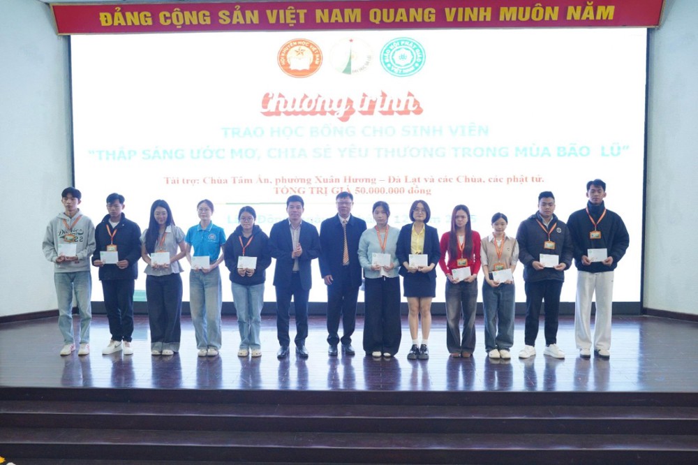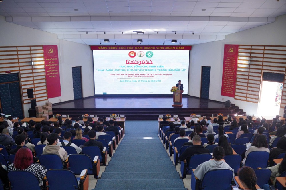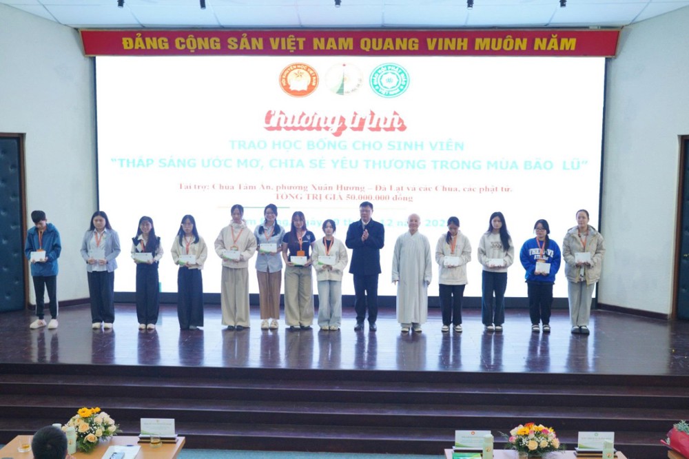 PSO – Chiều ngày 19/12/2025, chư Tôn đức Ni đã tổ chức lễ trao học bổng “Tiếp sức đến trường” dành cho 50 sinh viên có hoàn cảnh khó khăn đang theo học tại Trường đại học Đà Lạt (tỉnh Lâm Đồng).