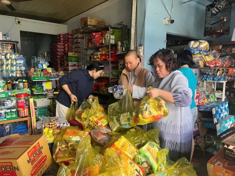 Sư cô Trưởng đoàn cho biết: Sau khi cứu trợ các tỉnh trung Trung bộ bị ảnh hưởng bão số 13 (Kalmaegi), từ ngày 18 đến nay, do nước lũ dâng cao đột ngột nên đoàn bị kẹt tại Tuy Hòa. Cùng trải qua những khó khăn như đồng bào vùng lũ.