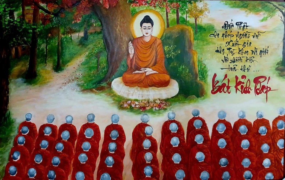 Khơi nguồn suối pháp” của Ni sư Thích Nữ Minh An (Nhuận Thanh) khắc họa quyết tâm xuất ly của bậc Tổ Ni qua hình ảnh rời bỏ hoàng cung, ba lần chí thành cầu thỉnh, với lời ca: “Như dòng suối mát trong, chảy giữa sa mạc ngàn năm.”