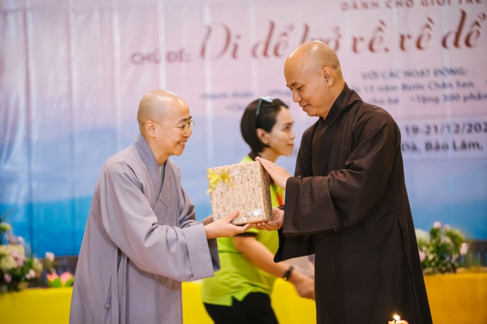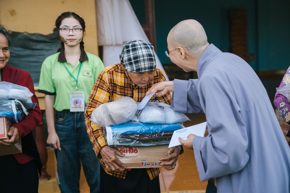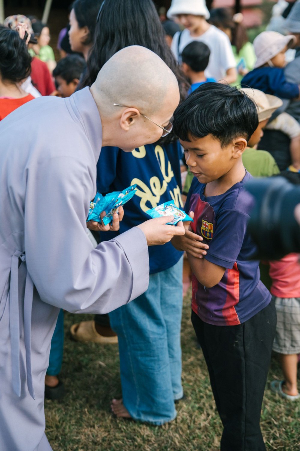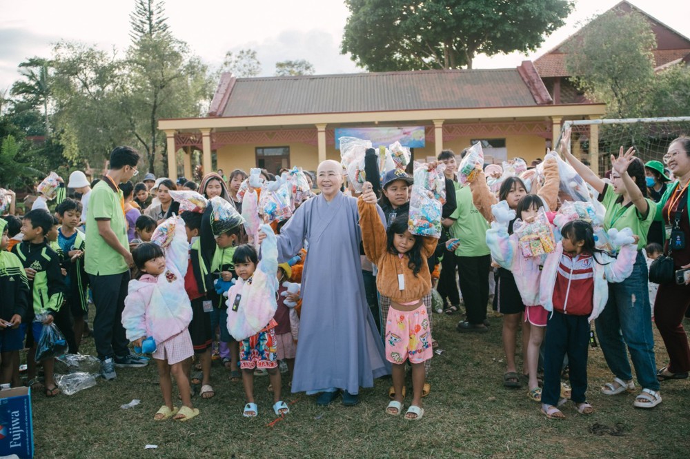 Bên cạnh đó, Ban Tổ chức đã trao tặng 300 phần quà ý nghĩa đến bà con và các trẻ em vùng núi, vùng sâu, vùng xa, thể hiện sự quan tâm, sẻ chia kịp thời trước những khó khăn trong đời sống, đồng thời lan tỏa tinh thần từ bi, tương thân tương ái và trách nhiệm phụng sự cộng đồng theo tinh thần Phật giáo.