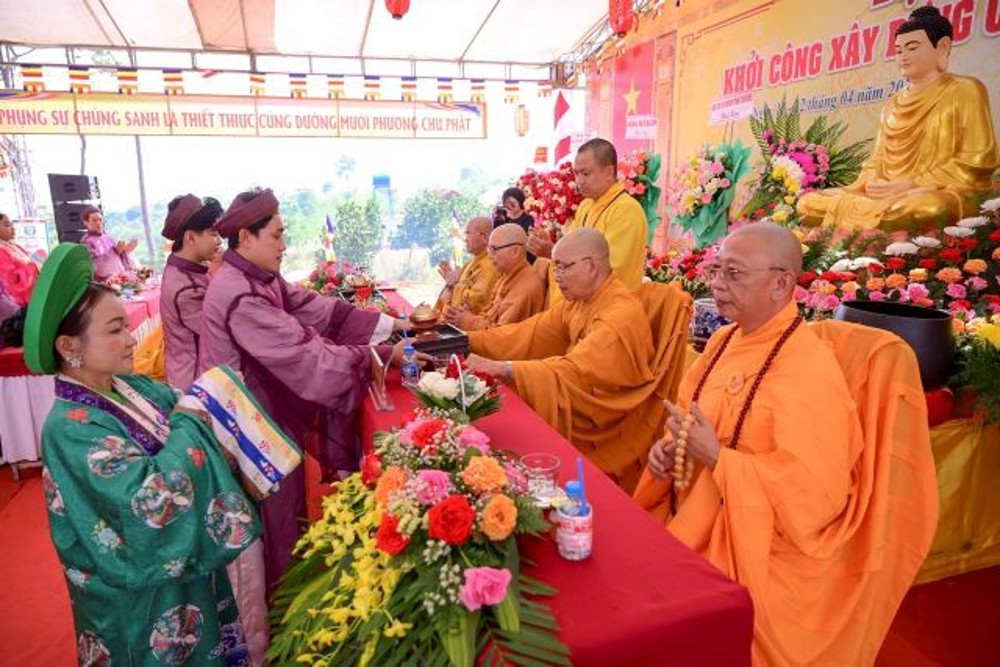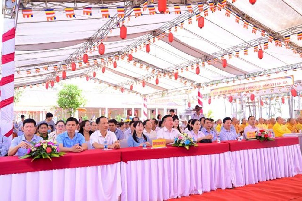 Đại diện chính quyền, ông Trần Duy Tráng – Phó Chủ tịch UBND xã Quảng Khê đã phát biểu chúc mừng sự kiện. Ông bày tỏ niềm hoan hỷ trước việc xây dựng ngôi Tam bảo, góp phần xiển dương đạo pháp, phát huy truyền thống “hộ quốc an dân”, “tốt đời đẹp đạo”, đồng thời khẳng định chính quyền địa phương sẽ luôn quan tâm, hỗ trợ để công trình sớm hoàn thành.