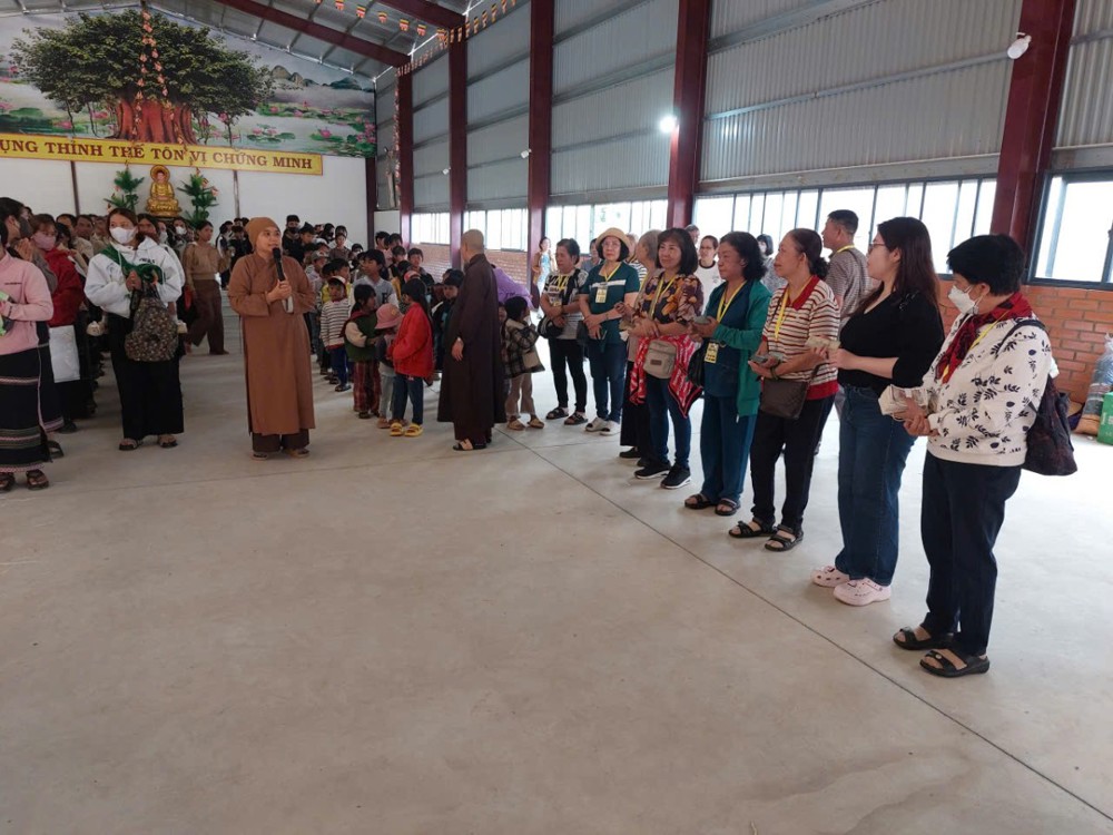 Thay mặt đoàn, Phật tử Nguyên Thành đã gửi lời tri ân đến lãnh đạo chính quyền địa phương xã Di Linh đã tạo điều kiện thuận lợi để chương trình được diễn ra suôn sẻ; tri ân Ni sư Phổ Tuệ – trụ trì chùa Thanh Sơn và Sư cô Minh Ngọc đã kết nối, hỗ trợ và động viên bà con, học sinh tham dự; đồng thời cảm ơn chư vị mạnh thường quân, quý Phật tử trong và ngoài nước đã phát tâm ủng hộ.