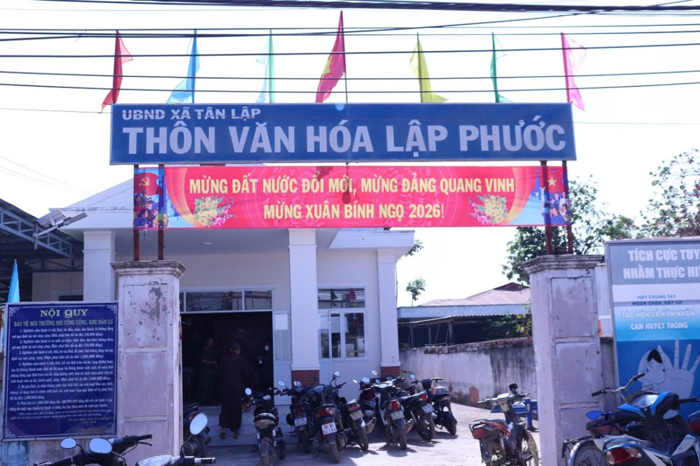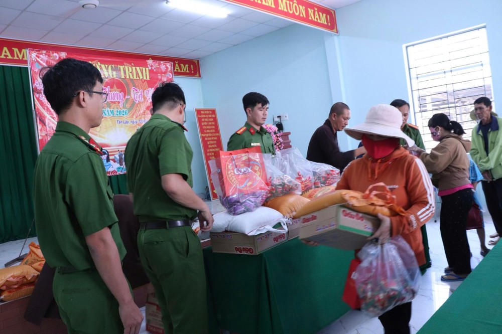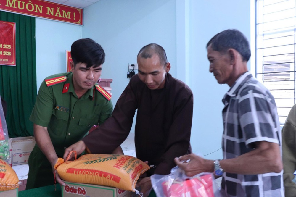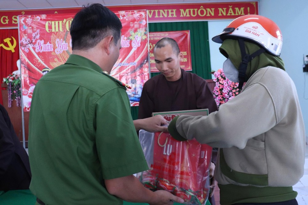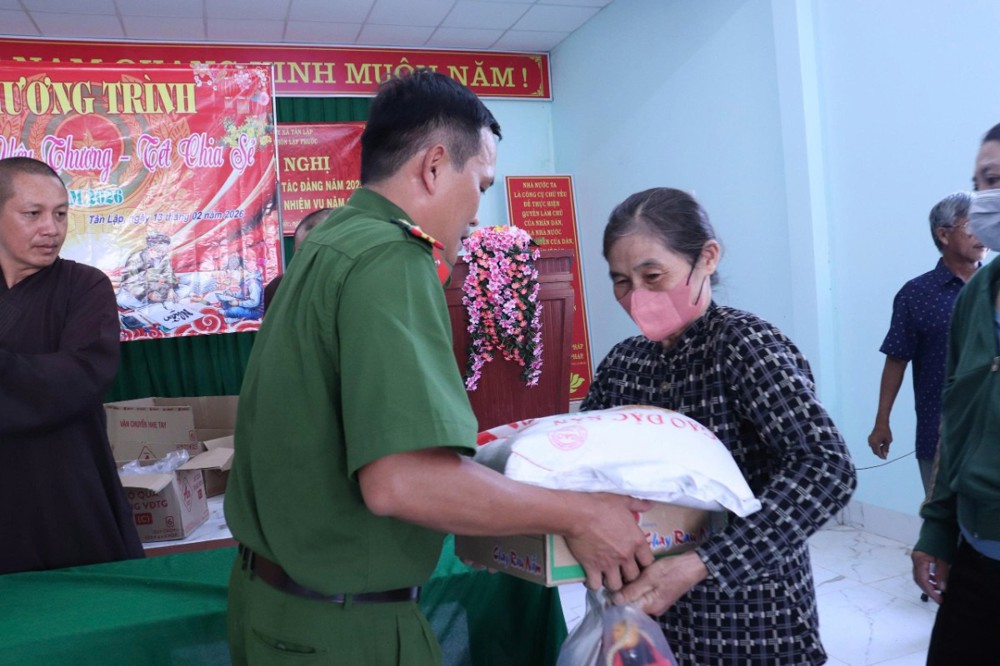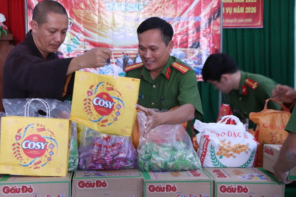 PSO - Chiều ngày 13/2/2026, tại thôn Văn hóa Lập Phước, xã Tân Lập, Thiền viện Trúc Lâm Chánh Thiện phối hợp cùng Công an xã Tân Lập tổ chức chương trình trao tặng quà Tết cho bà con có hoàn cảnh khó khăn trên địa bàn.