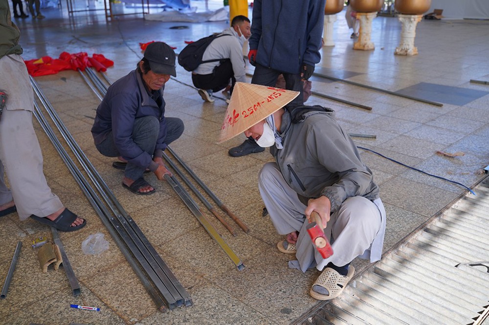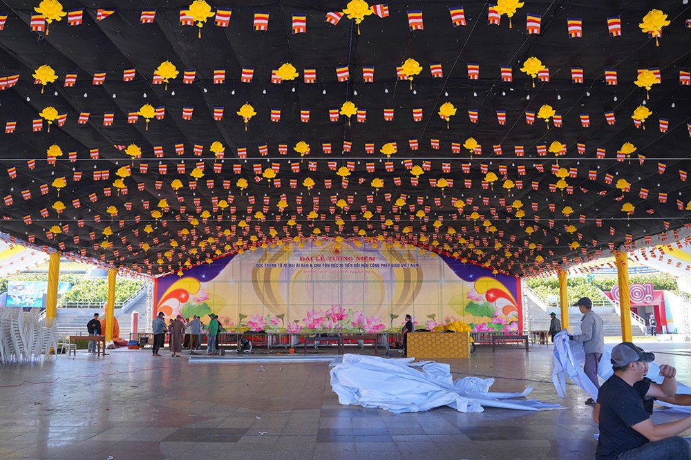 Trong thời gian qua, tại hai địa điểm diễn ra các hoạt động chính, chư Tôn đức đã trực tiếp chỉ đạo và đôn đốc các bộ phận gấp rút triển khai nhiều hạng mục chuẩn bị. Các công trình thiết trí lễ đài, dựng khung rạp, trang hoàng cờ hoa, băng rôn, biểu ngữ đang dần hoàn thiện, tạo nên không gian trang nghiêm, trọng thể cho đại lễ.