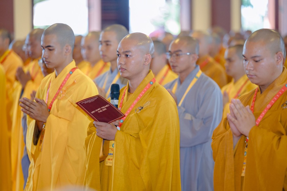 Tại buổi lễ toàn thể giới tử hiện diện nơi đây để thọ nhận giới Pháp đồng thành đảnh lễ tri ân chư Tôn Giáo phẩm đã vì hậu học khai mở tuyển Phật trường, truyền trao giới pháp: “Dẫu đường đạo lắm gian lao, chúng con nguyện giữ chí kiên định, tinh tấn nghiêm trì giới luật để không phụ lòng quý ngài đã tin tưởng và hàng tín thí kỳ vọng”.