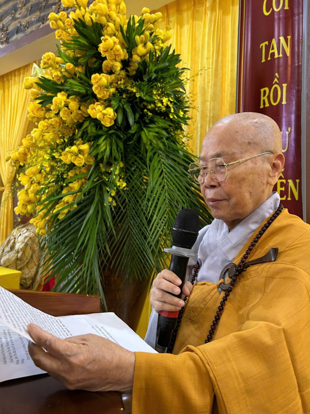 Trong không khí trang nghiêm của đại chúng, Ni trưởng Thích Nữ Như Phú, Trưởng Ban Tổ chức Tang lễ, đã tuyên đọc Văn tưởng niệm của Phân ban Ni giới tỉnh Lâm Đồng dâng lên cố Ni trưởng: