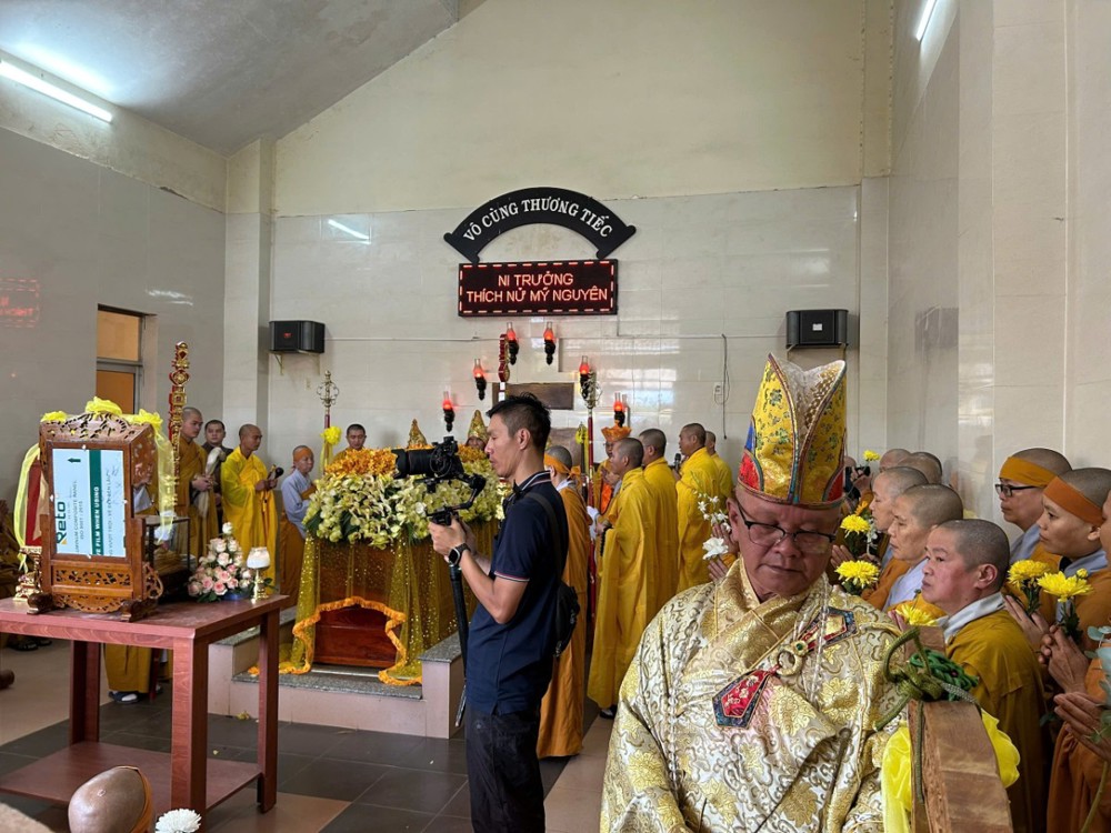 PSO- Sáng ngày 20/4/2026 (mùng 4 tháng Hai năm Bính Ngọ), tại chùa Linh Giác (20 Lý Nam Đế, phường Lâm Viên – Đà Lạt), Ban Tổ chức Tang lễ và môn đồ pháp quyến đã trang nghiêm cử hành lễ tưởng niệm và cung tống kim quan Ni trưởng Thích Nữ Mỹ Nguyên, Chứng minh Phân ban Ni giới tỉnh, Viện chủ chùa, đến trà tỳ tại đài hỏa táng Du Sinh.